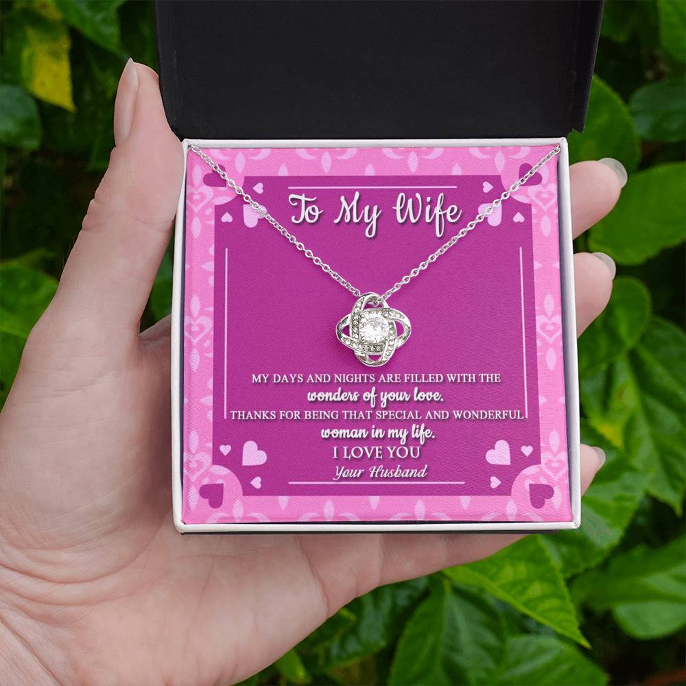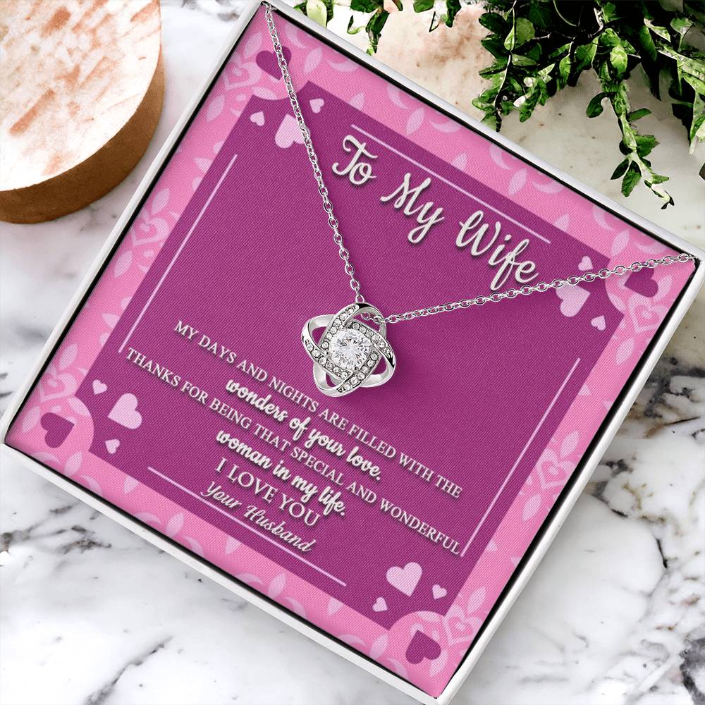Imagine her reaction receiving this beautiful Love Knot Necklace. Representing an unbreakable bond between two souls, this piece features a beautiful pendant embellished with premium cubic zirconia crystals. Surprise your loved one with this gorgeous gift today!