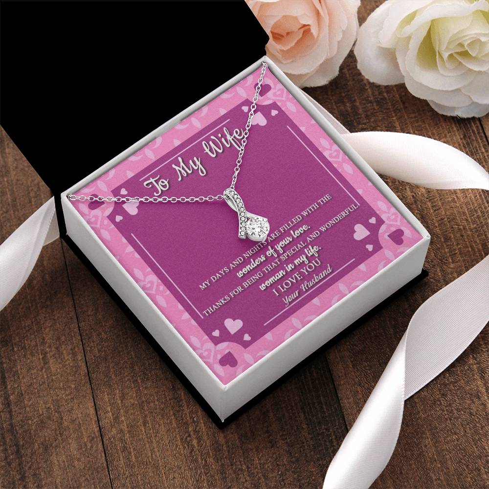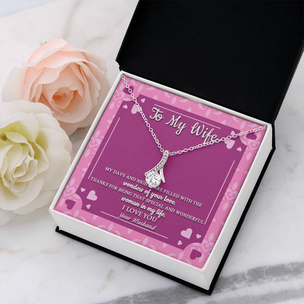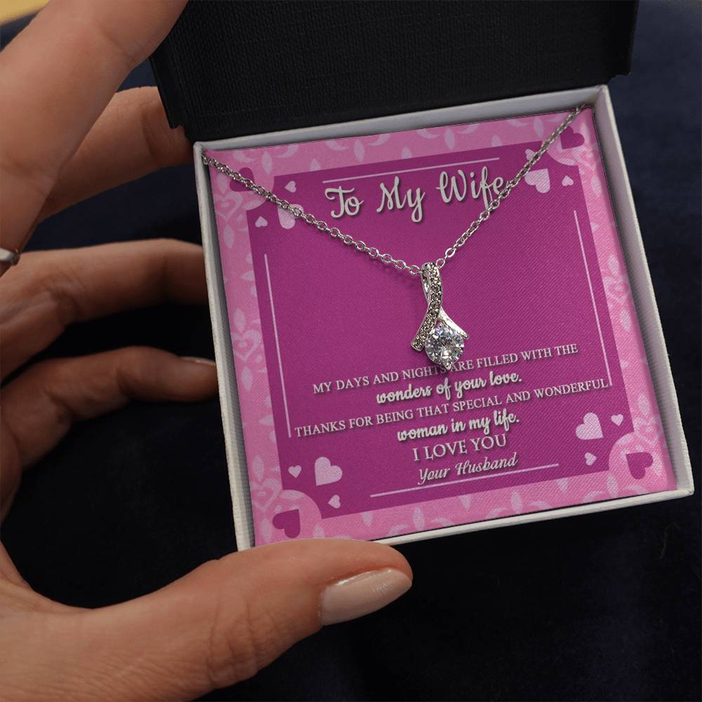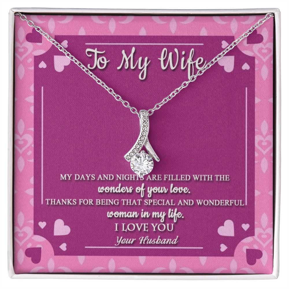 Imagine her reaction when she opens this stunning gift! The Alluring Beauty necklace features a petite ribbon shaped pendant that is sure to dazzle your special someone. Whether it's a birthday or anniversary, make sure to get her a gift she will love for years to come.