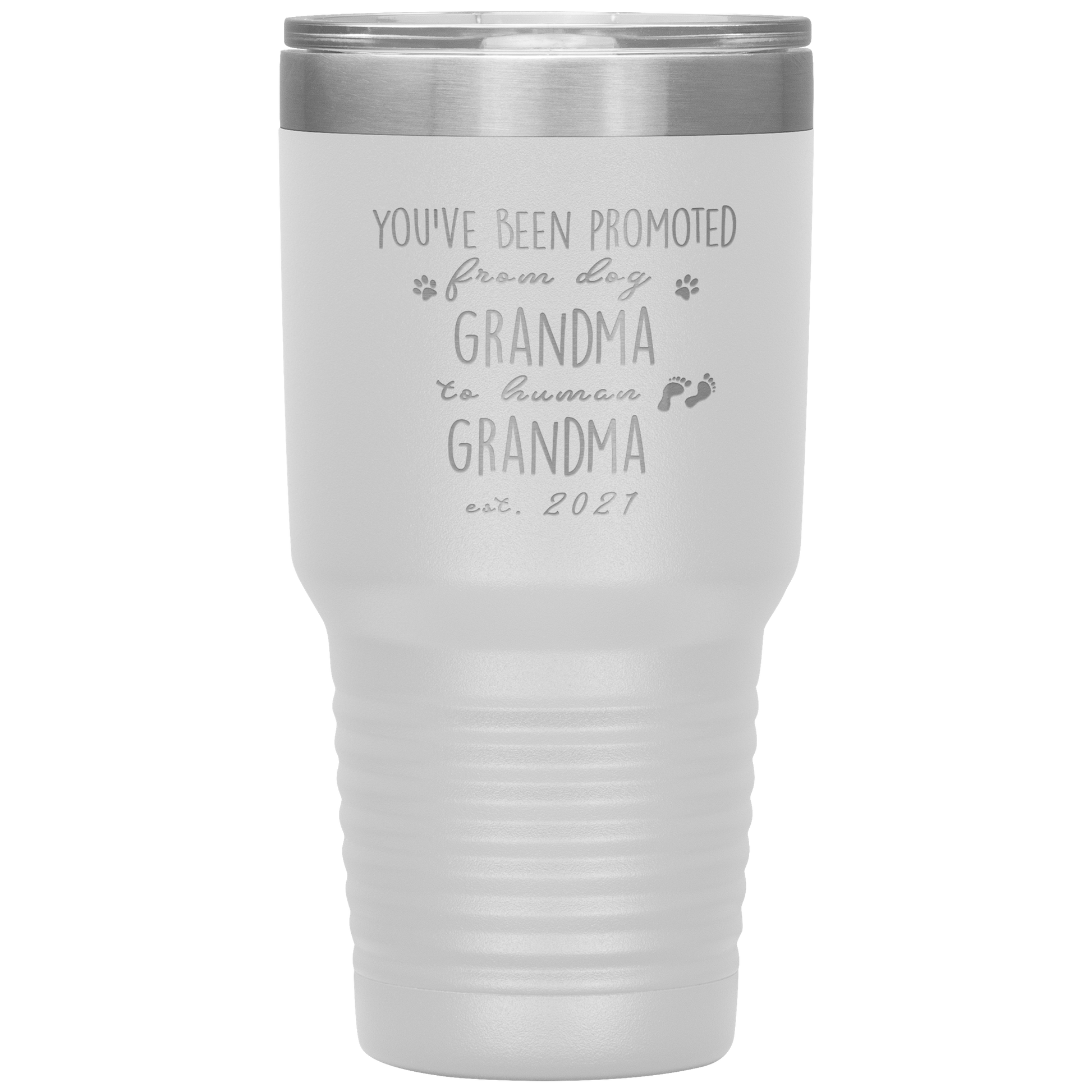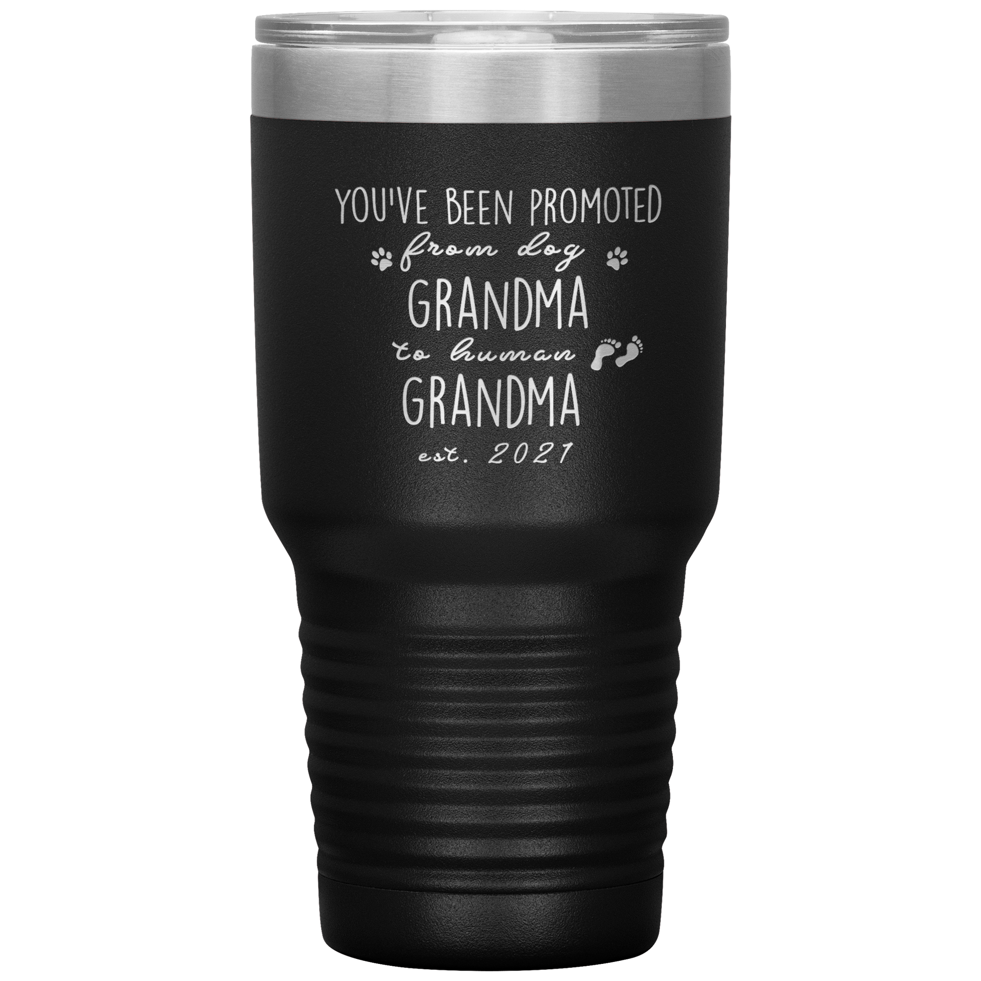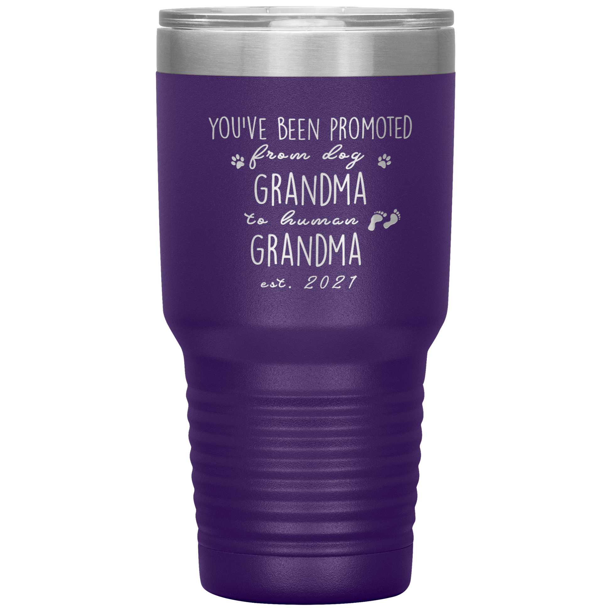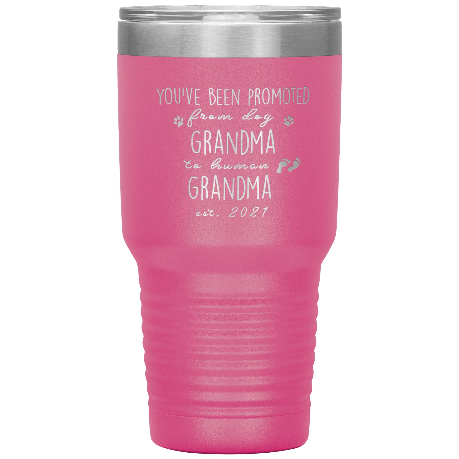 Perfect Personalized Pregnancy Announcement Tumbler For Grandparents Promoted From Dog Grandma To Human Grandma Laser Etched 30oz Stainless Steel Gifts Mug Durable color 7 ASIN: B08FDJ3ZM5
