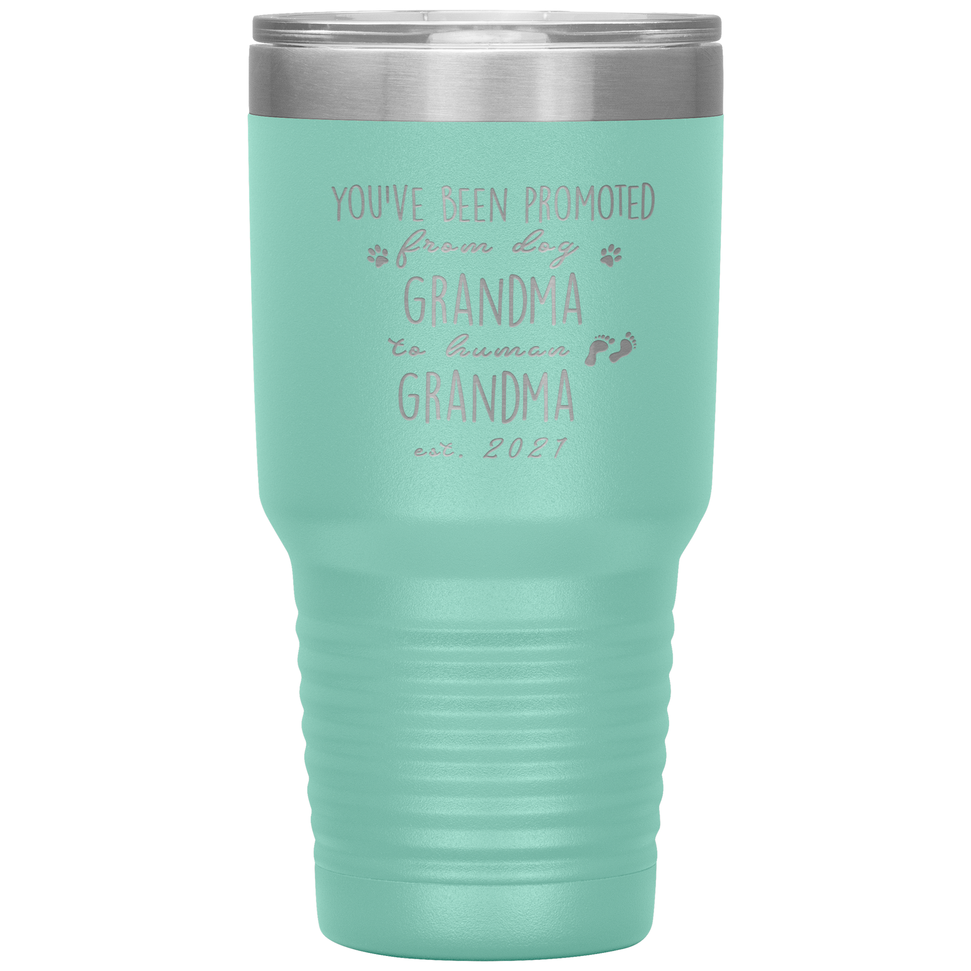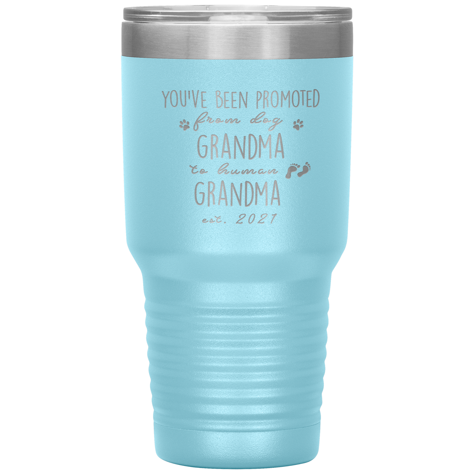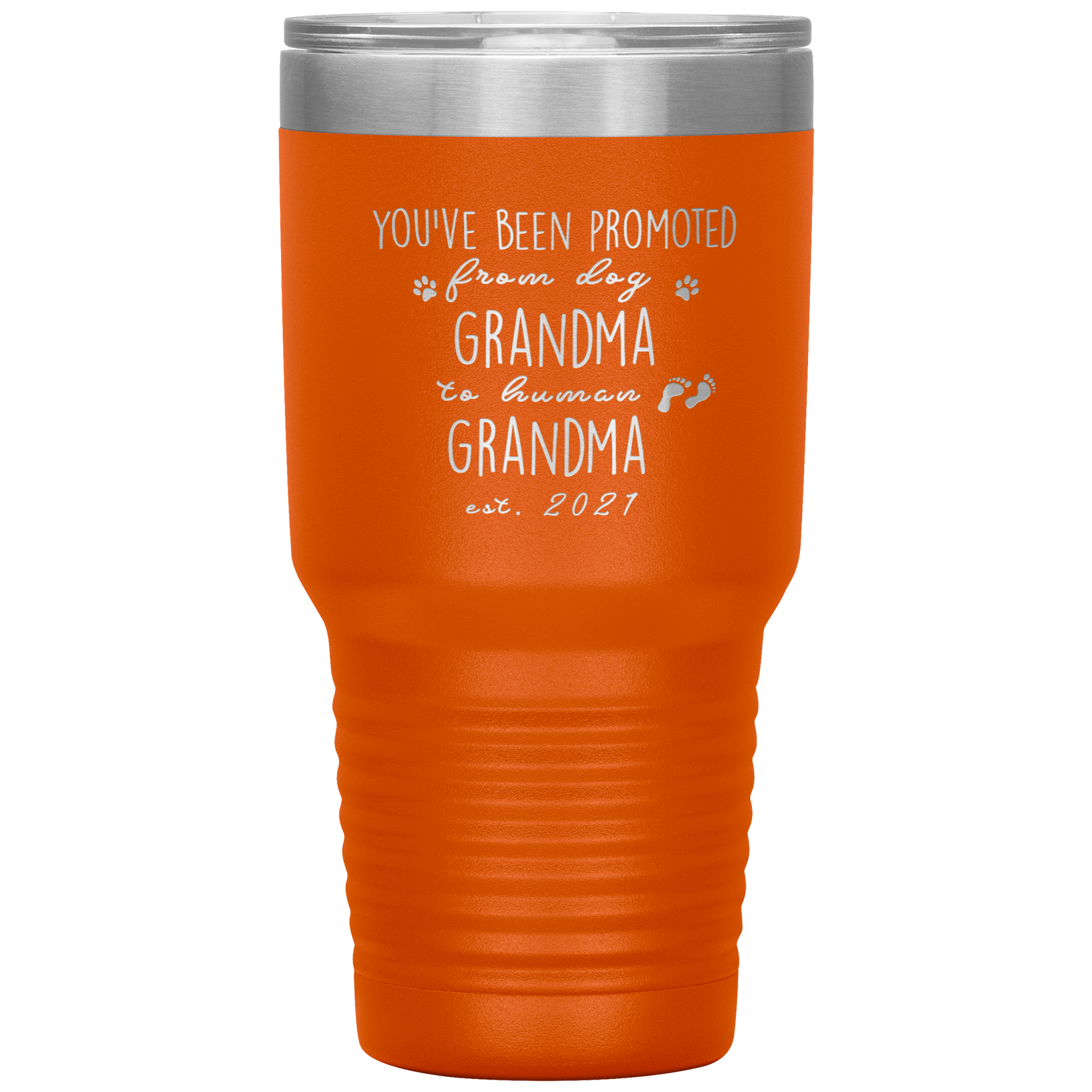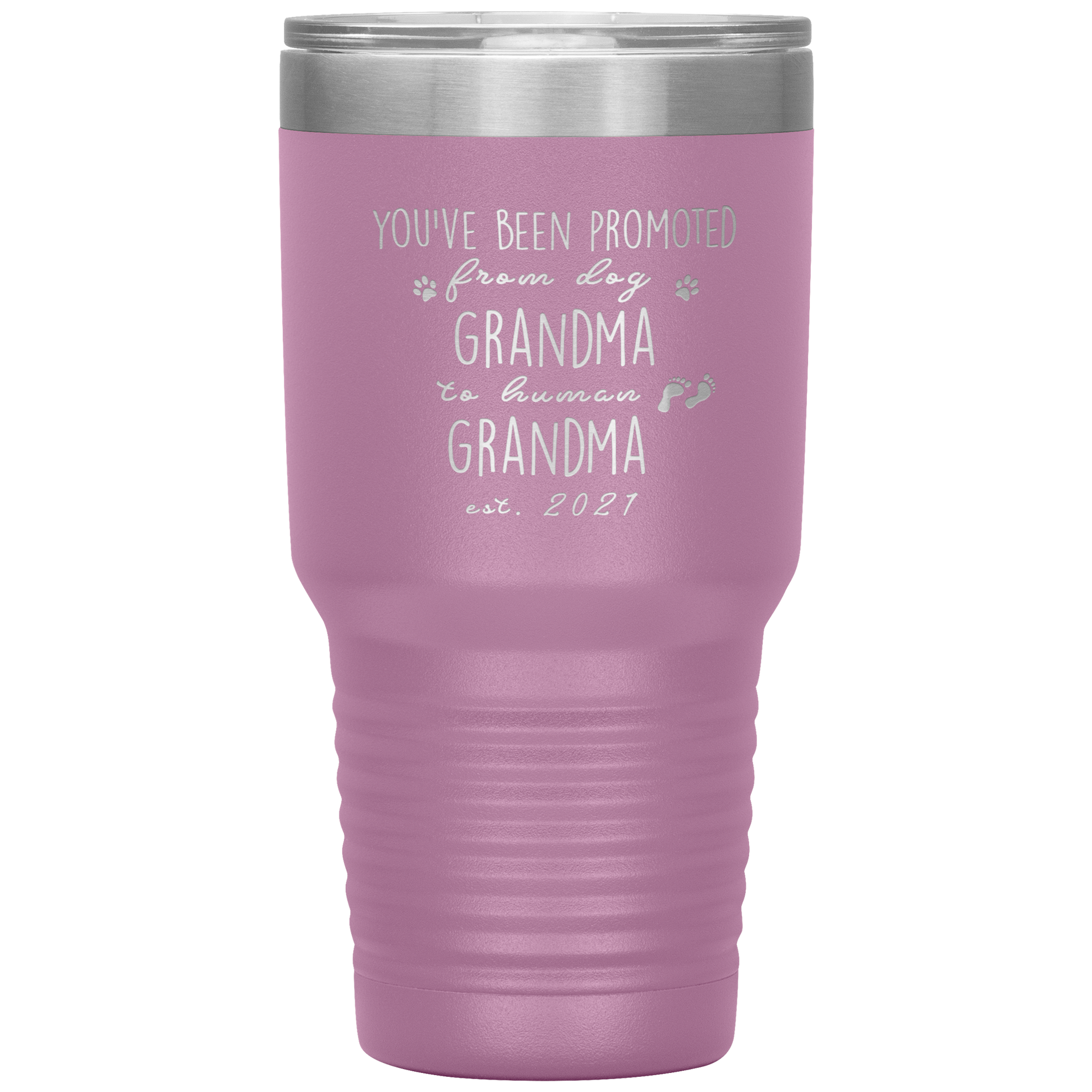 Perfect Personalized Pregnancy Announcement Tumbler For Grandparents Promoted From Dog Grandma To Human Grandma Laser Etched 30oz Stainless Steel Gifts Mug Durable color 7 ASIN: B08FDJ3ZM5