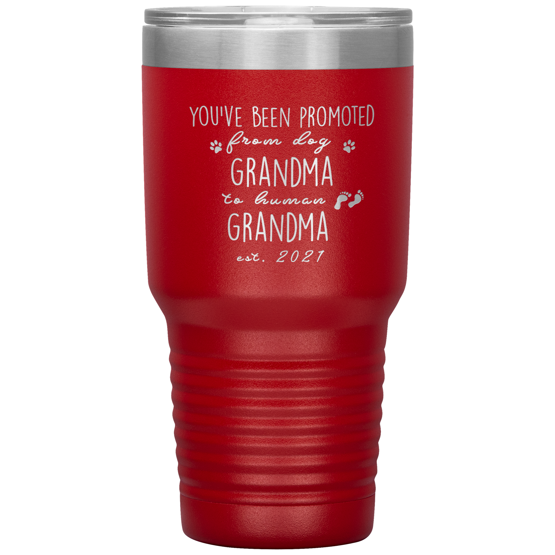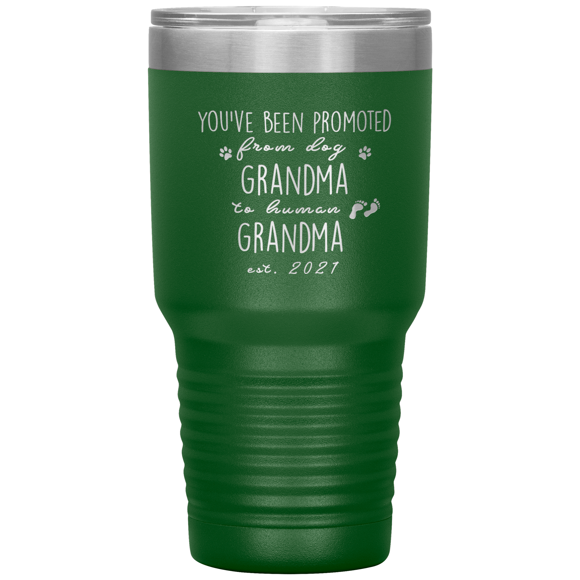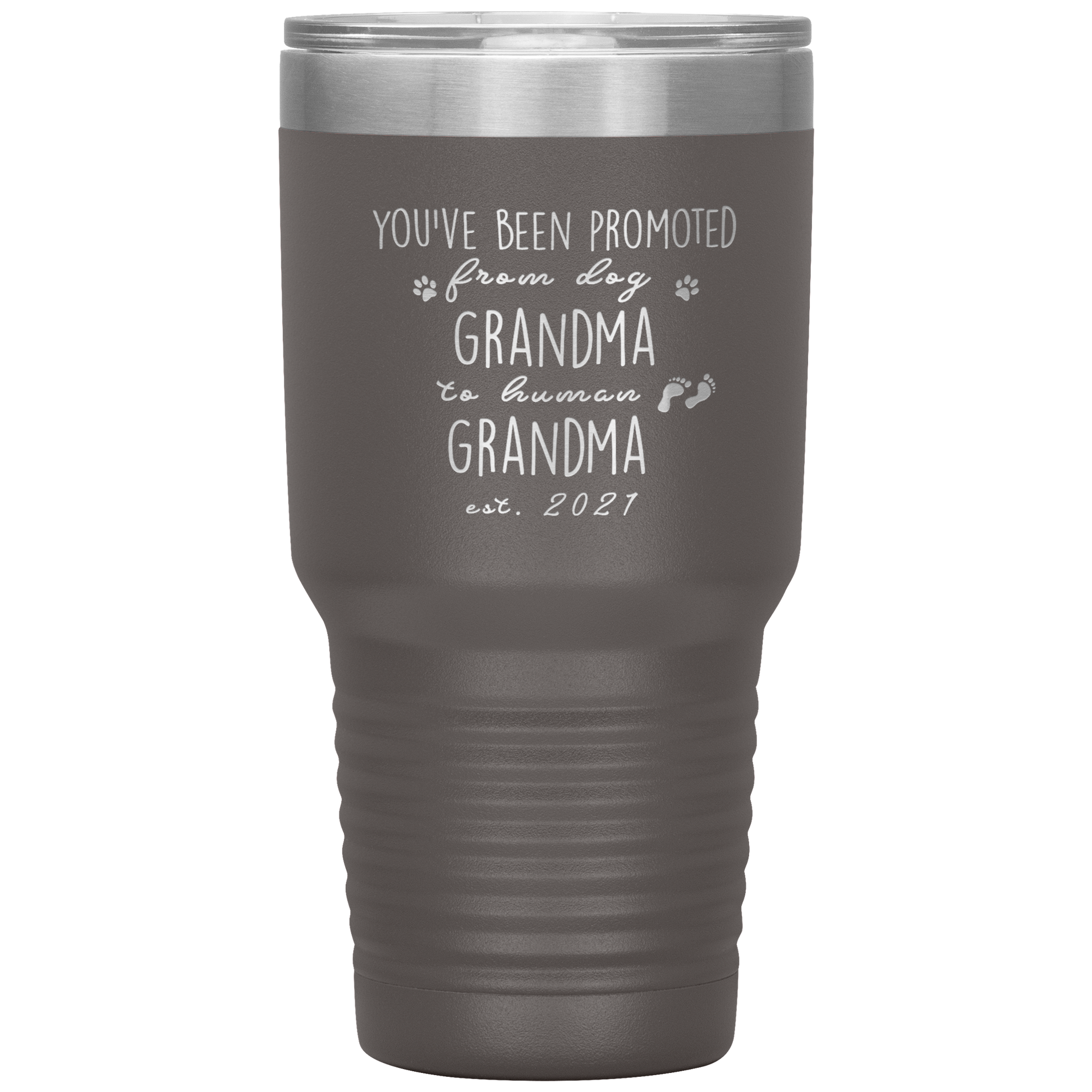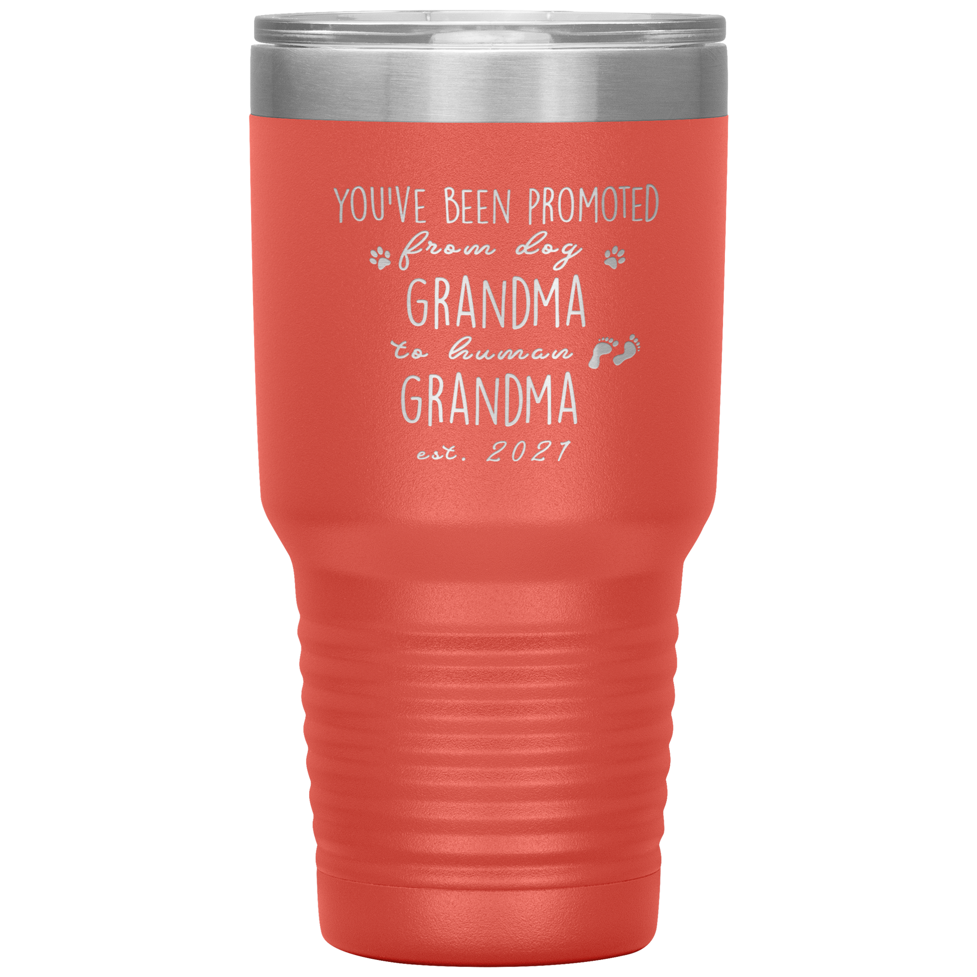 Perfect Personalized Pregnancy Announcement Tumbler For Grandparents Promoted From Dog Grandma To Human Grandma Laser Etched 30oz Stainless Steel Gifts Mug Durable color 7 ASIN: B08FDJ3ZM5