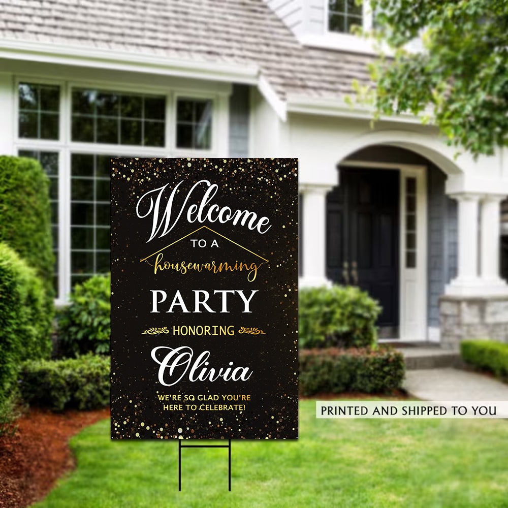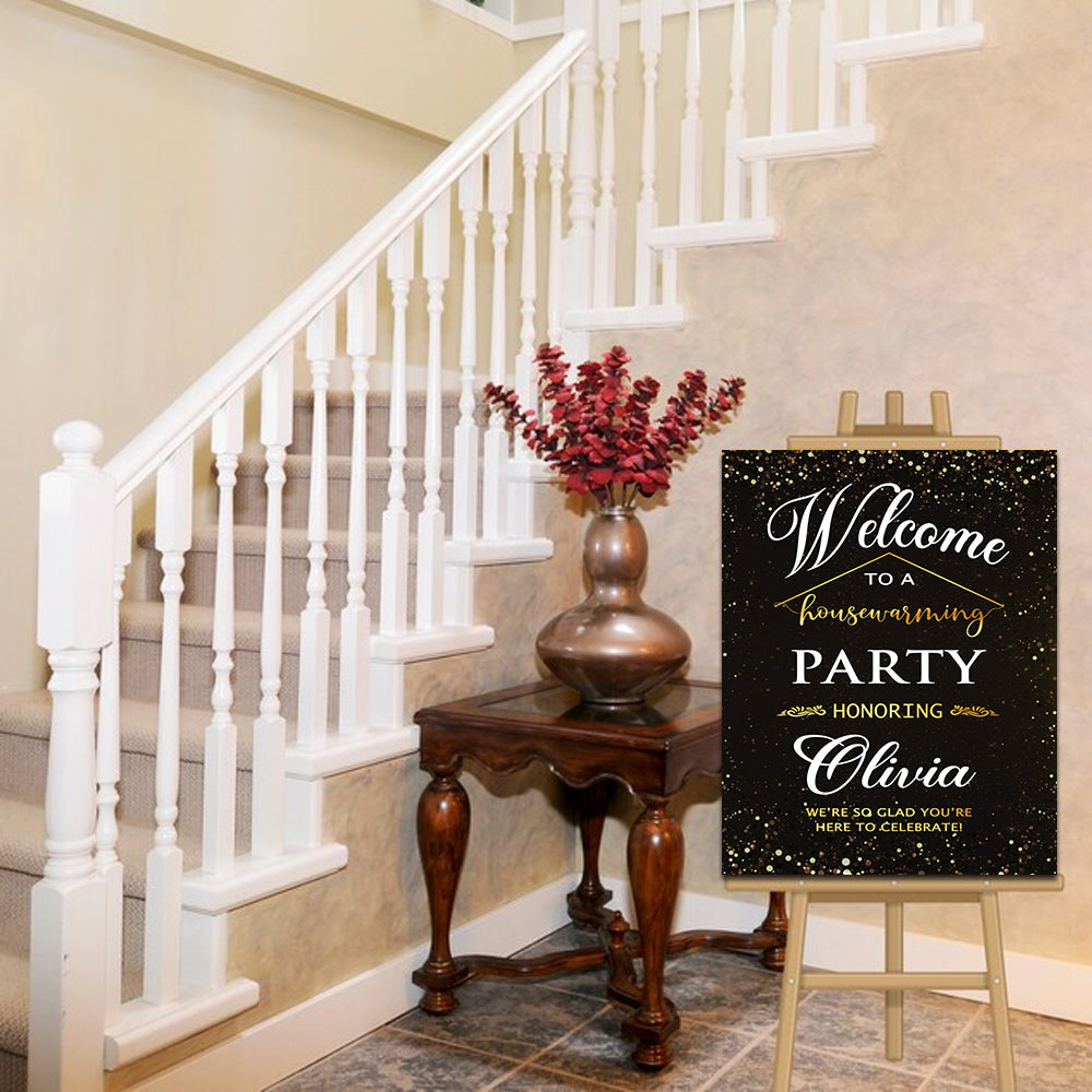 Personalized Housewarming party Sign, Housewarming Party Decorations, Welcome Sign Printable Editable, Housewarming Welcome Sign Template Simple, Indoor Outdoor Welcome Sign, Gold with White on Black