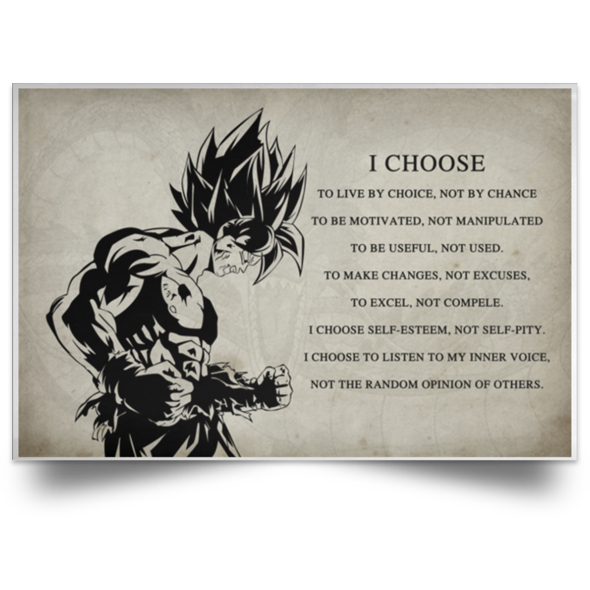 Personalized I Choose - Goku - English - Dragon Ball Poster Posters Family Friend Gift Unisex, Awesome Perfect Happy Birthday Gift Decor Bedroom, Living Room Print POSLA Satin Landscape Poster