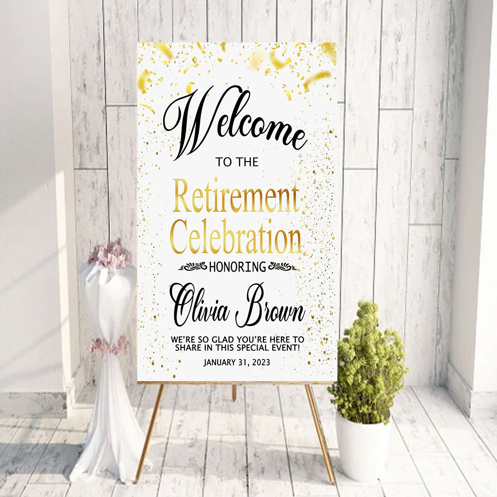 Welcome to The Retirement Celebration Yard Sign, Decoration of Retirement Party Sign on White and Yellow Background, Ideas Gift Retiree Sign, Party Supplies, Custom Welcome Signs
