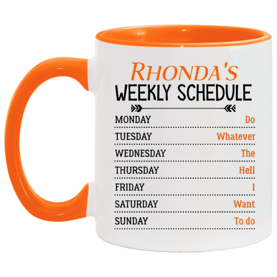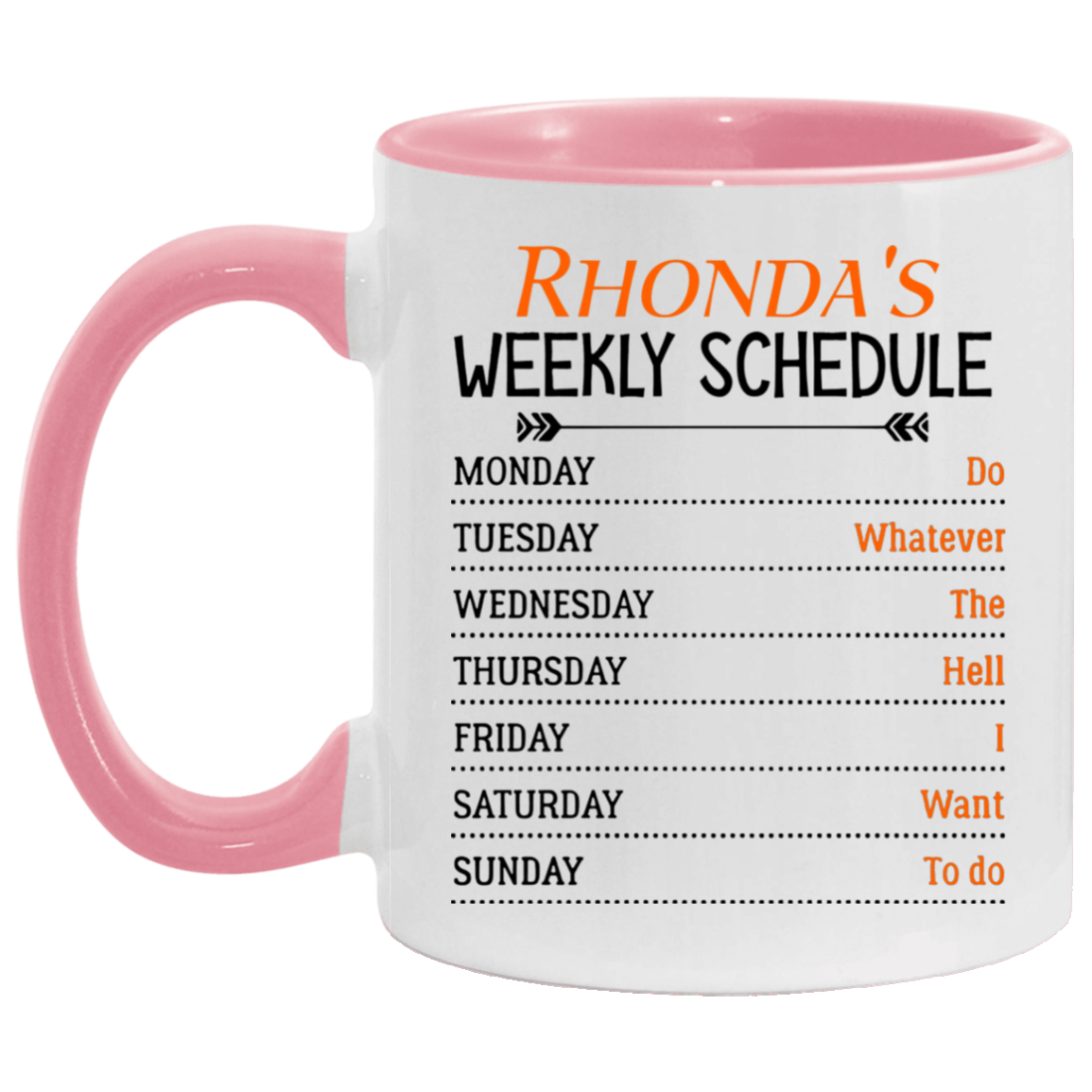 Quote coffee Mug Personalized Weekly Schedule Do Whatever The Hell I Want To Do Ceramic Accent Mug On Birthday Gift Hot cold coffee mug holder Capacity and Perfect size 2 Side, 11 oz White - Pink AM11OZ Accent Mug