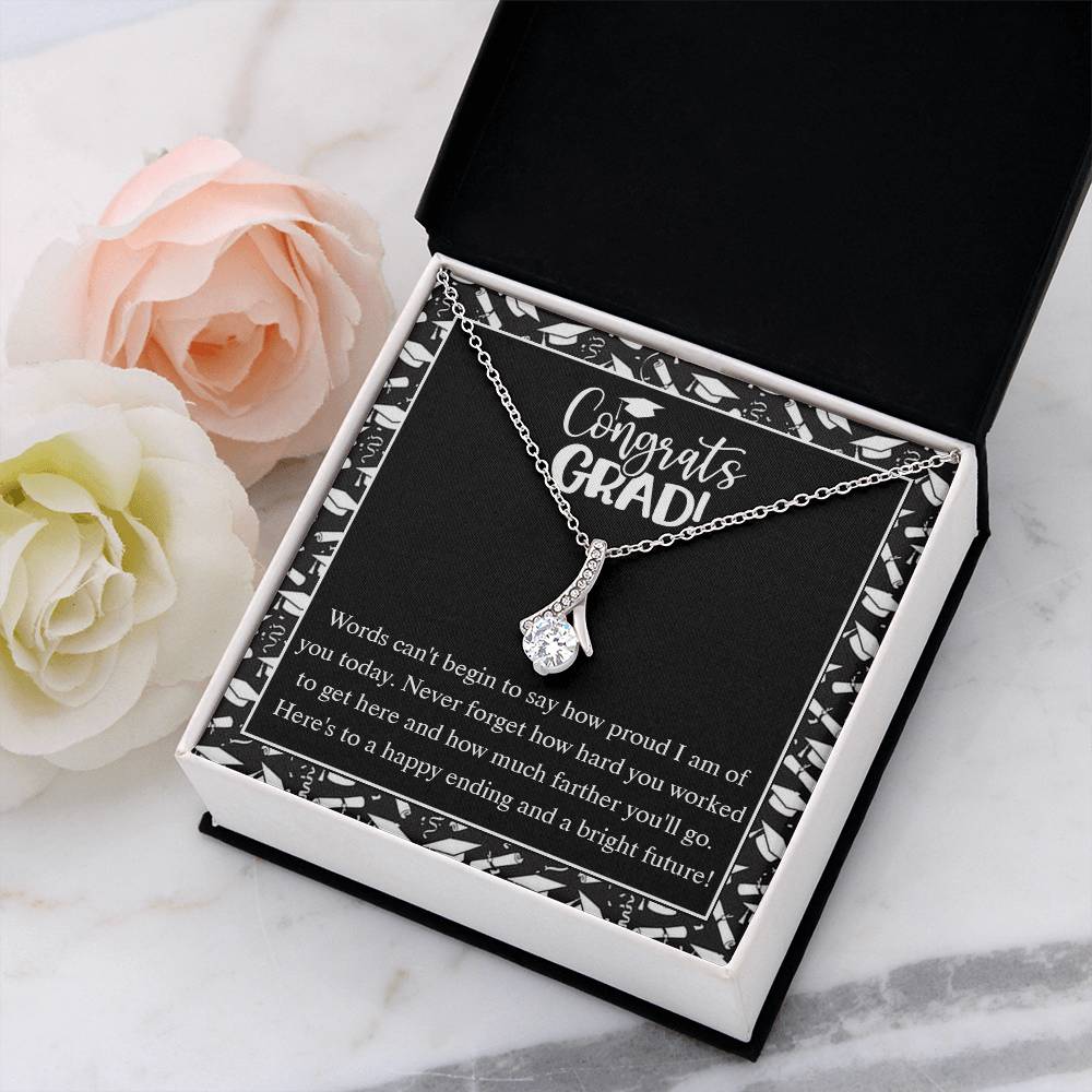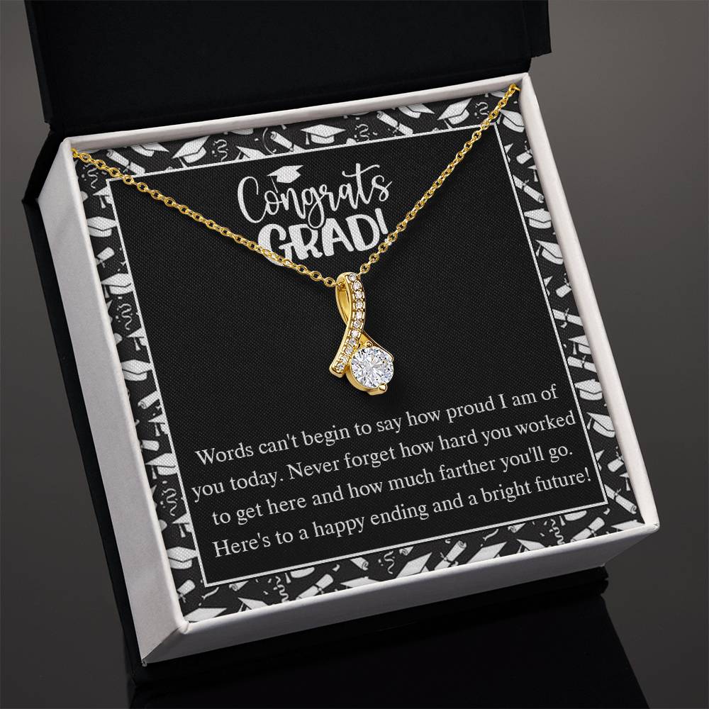 Imagine her reaction when she opens this stunning gift! The Alluring Beauty necklace features a petite ribbon shaped pendant that is sure to dazzle your special someone. Whether it's a birthday or anniversary, make sure to get her a gift she will love for years to come.