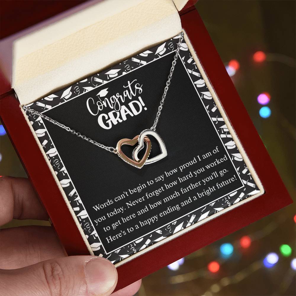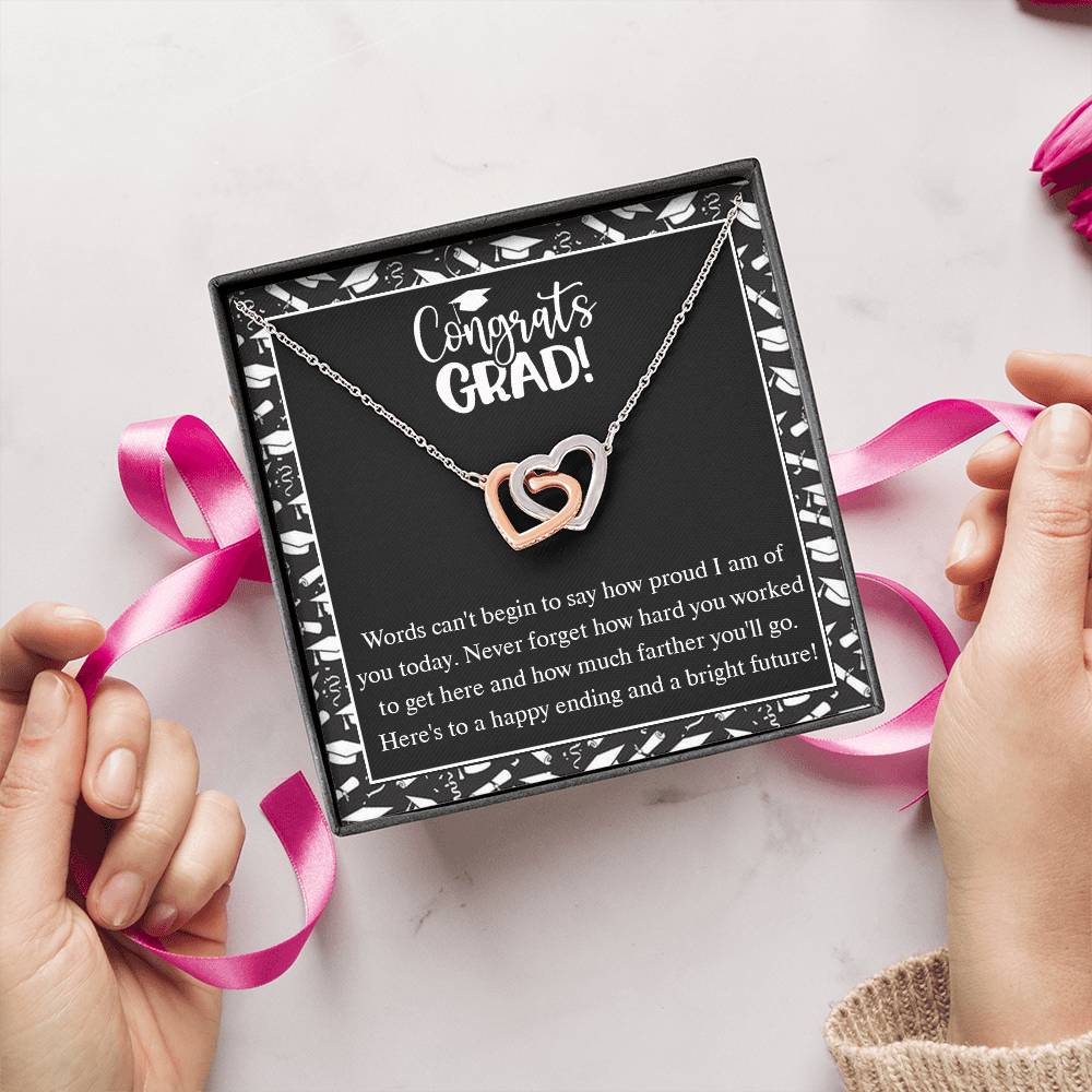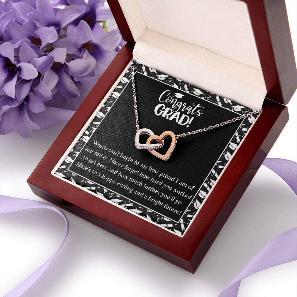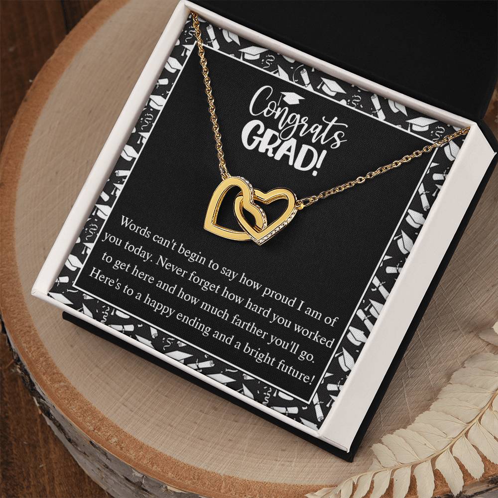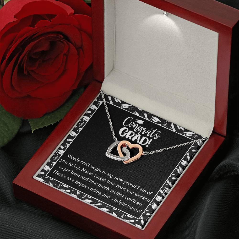 Give her the gift that symbolizes your never-ending love. Featuring two lovely hearts embellished with cubic zirconia crystals, this Interlocking Hearts necklace is the perfect accessory for everyday wear. Whether it's a memorable anniversary or a special birthday, make sure to dazzle your special someone by gifting them this stunning necklace.