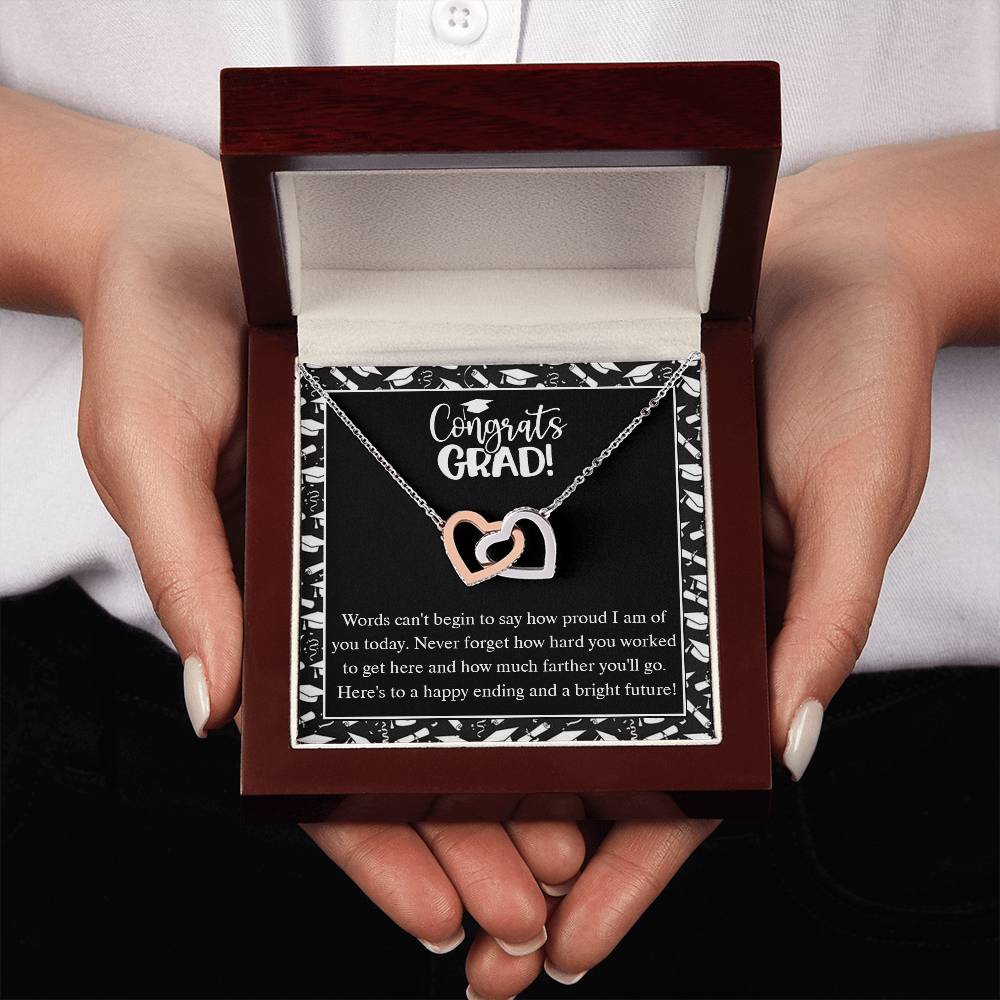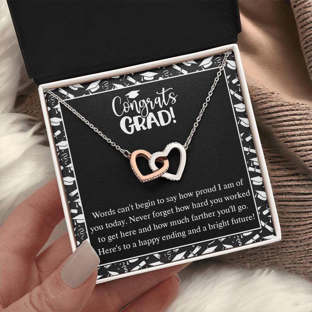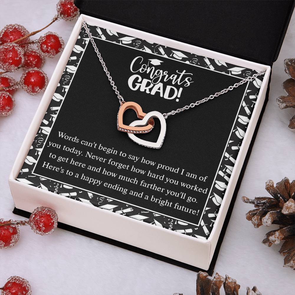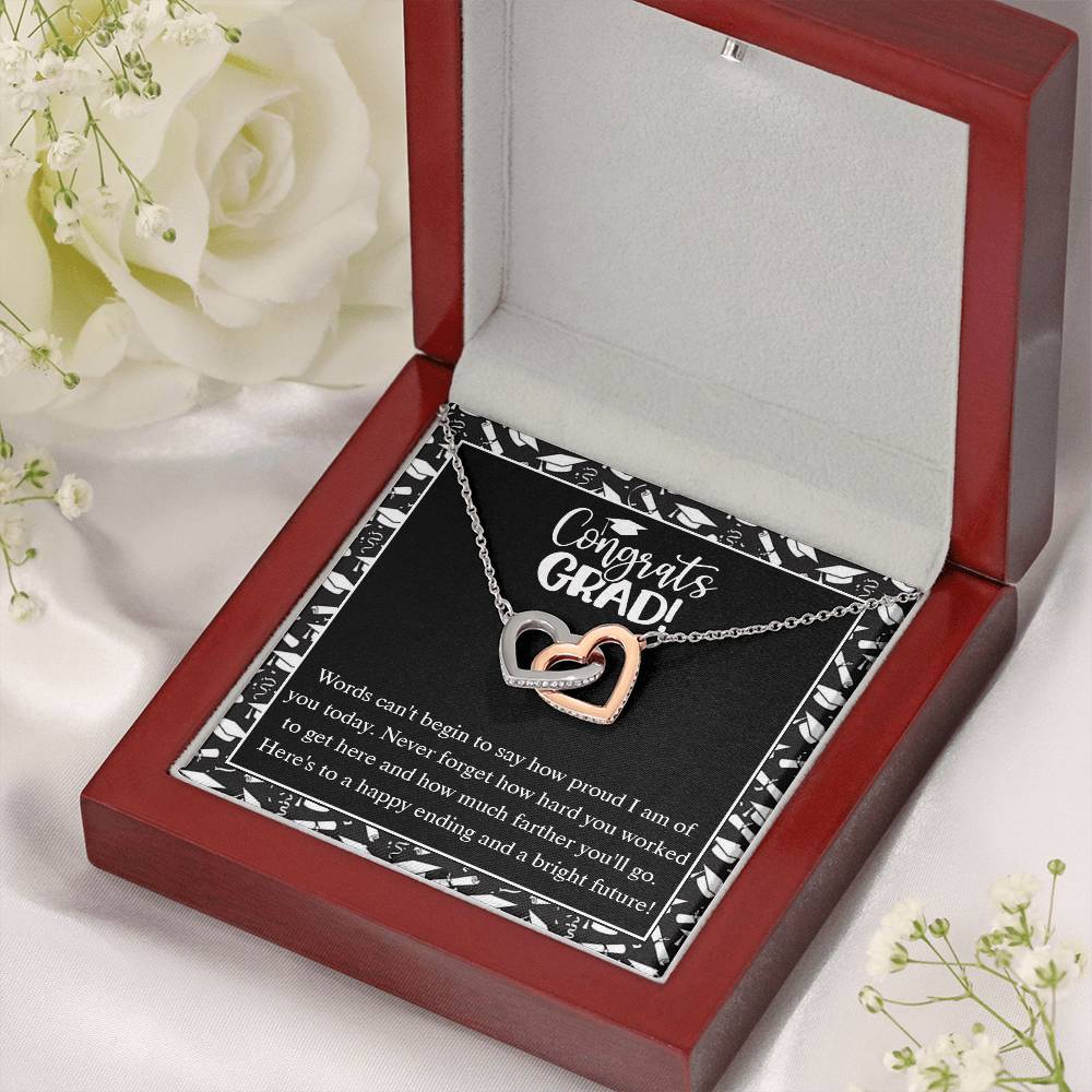 Give her the gift that symbolizes your never-ending love. Featuring two lovely hearts embellished with cubic zirconia crystals, this Interlocking Hearts necklace is the perfect accessory for everyday wear. Whether it's a memorable anniversary or a special birthday, make sure to dazzle your special someone by gifting them this stunning necklace.