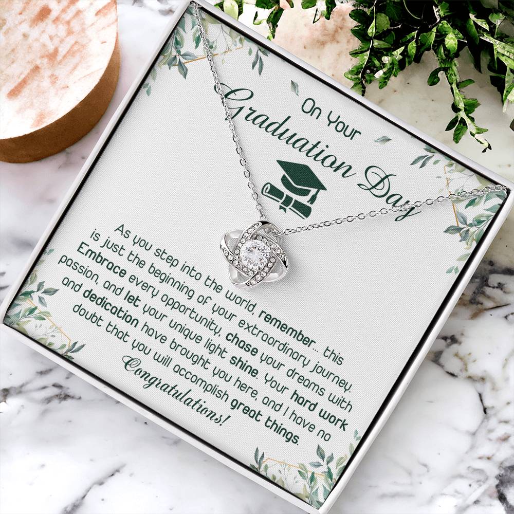 Imagine her reaction receiving this beautiful Love Knot Necklace. Representing an unbreakable bond between two souls, this piece features a beautiful pendant embellished with premium cubic zirconia crystals. Surprise your loved one with this gorgeous gift today!