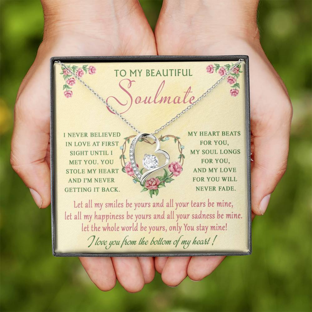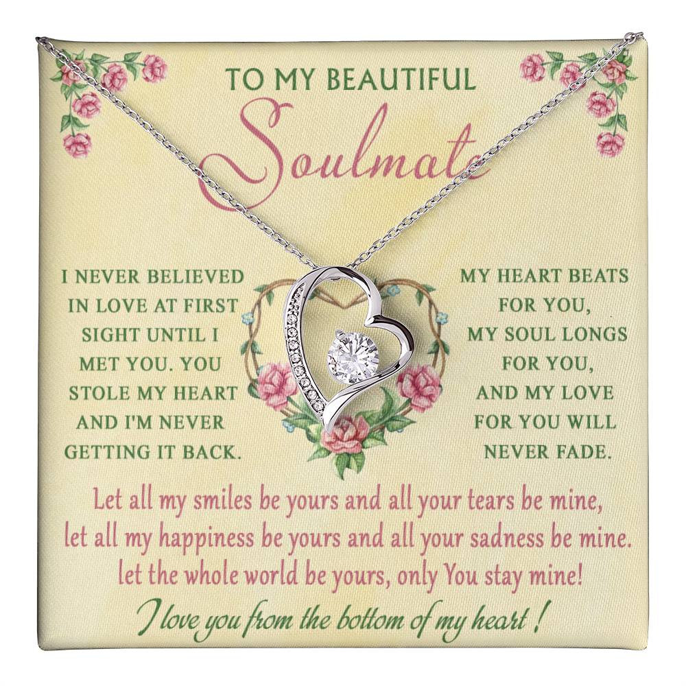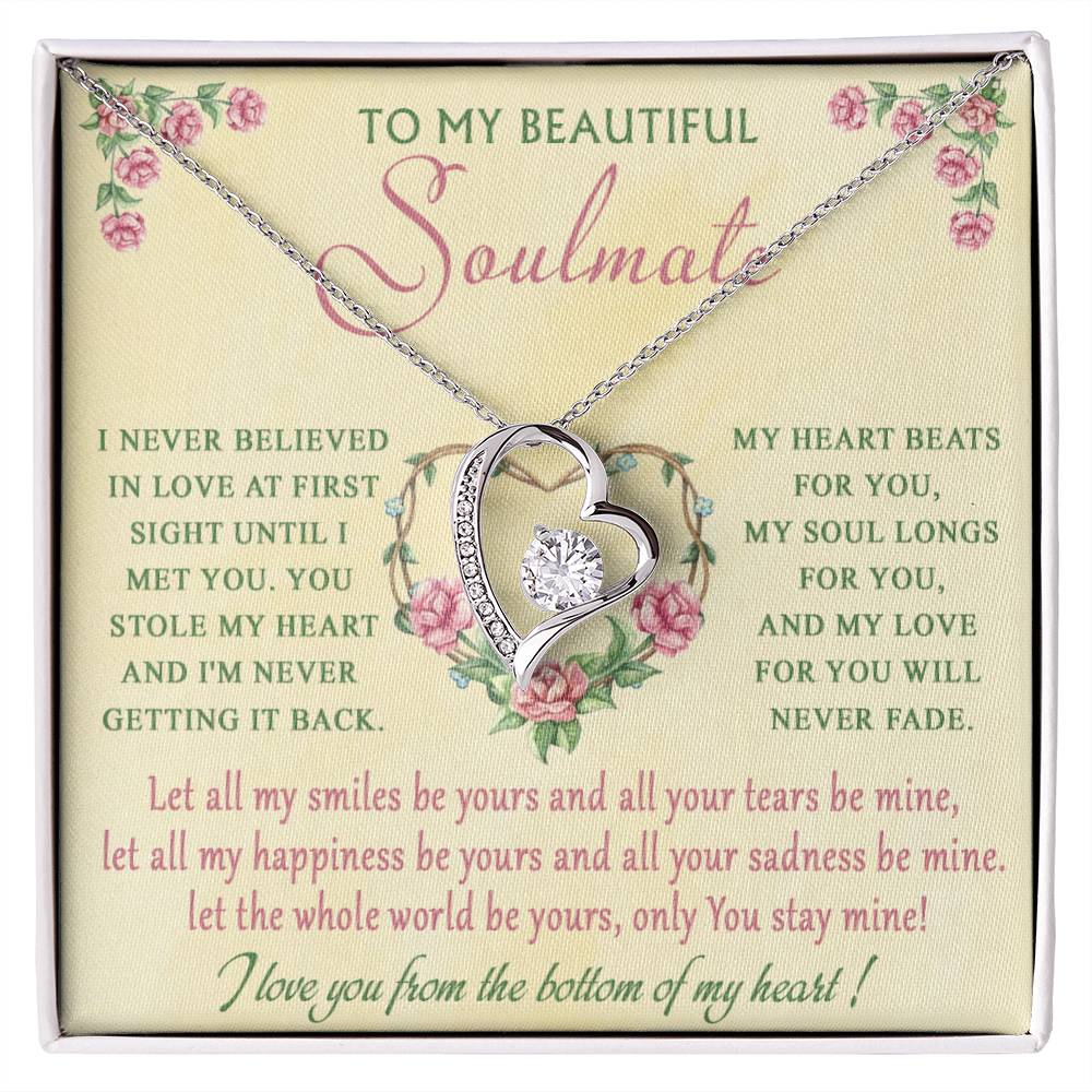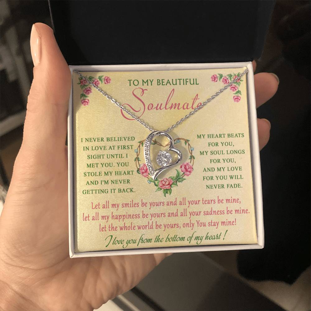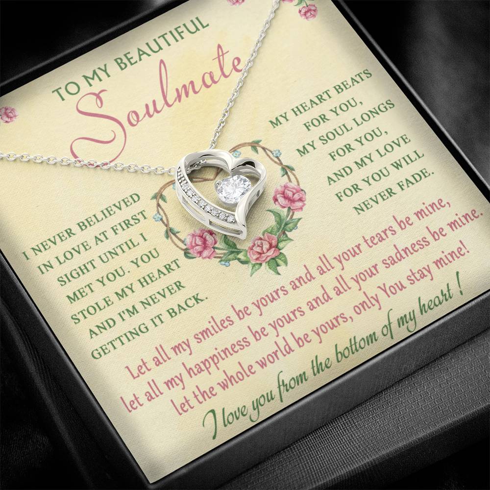 The dazzling Forever Love Necklace is sure to make her heart melt! This necklace features a stunning 6.5mm CZ crystal surrounded by a polished heart pendant embellished with smaller crystals to add extra sparkle and shine. Beautifully crafted with either a white gold or yellow gold finish, be sure to give her a classic gift she can enjoy everyday.
