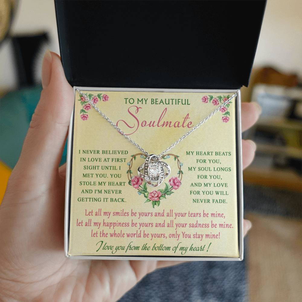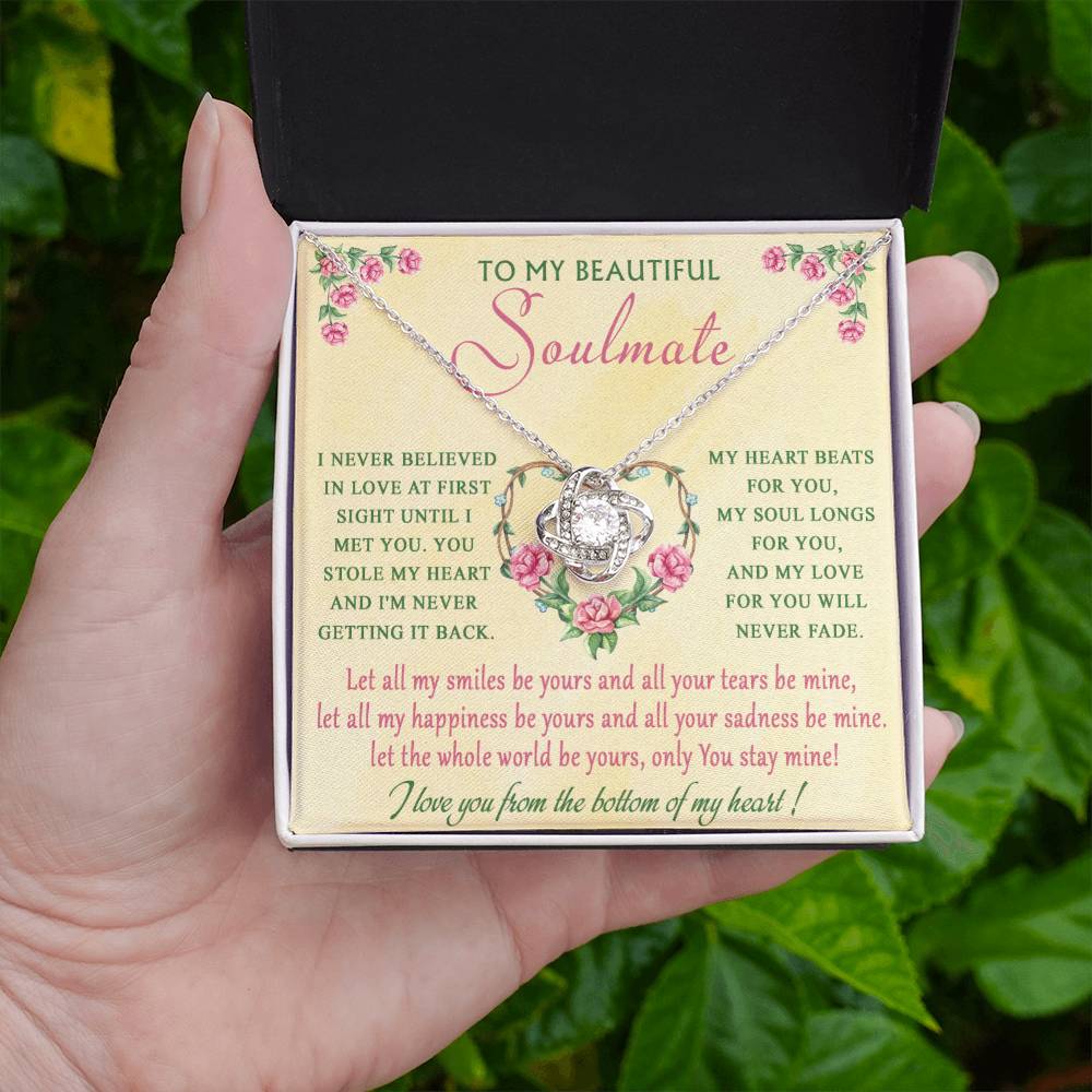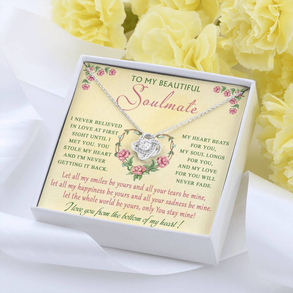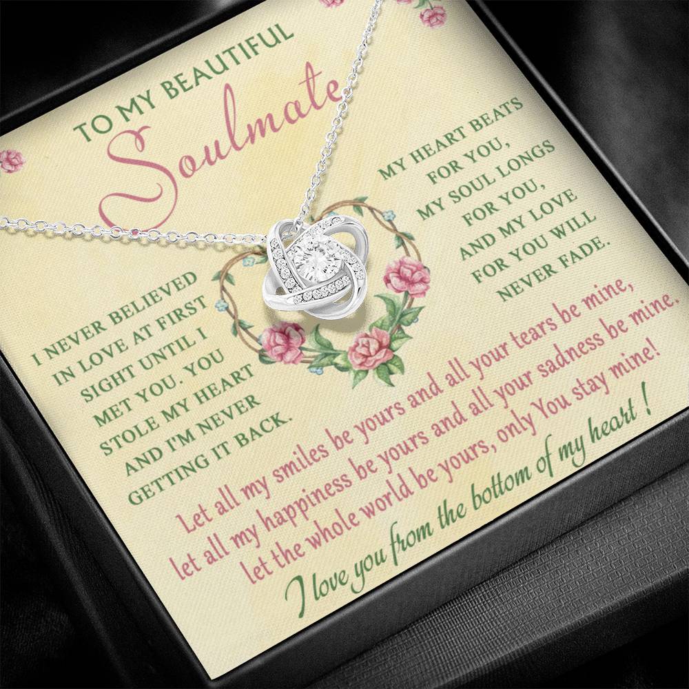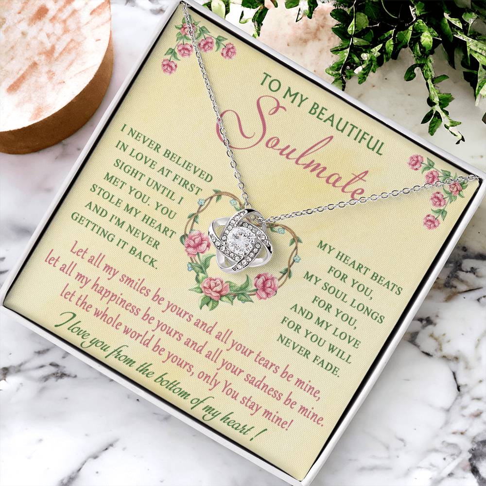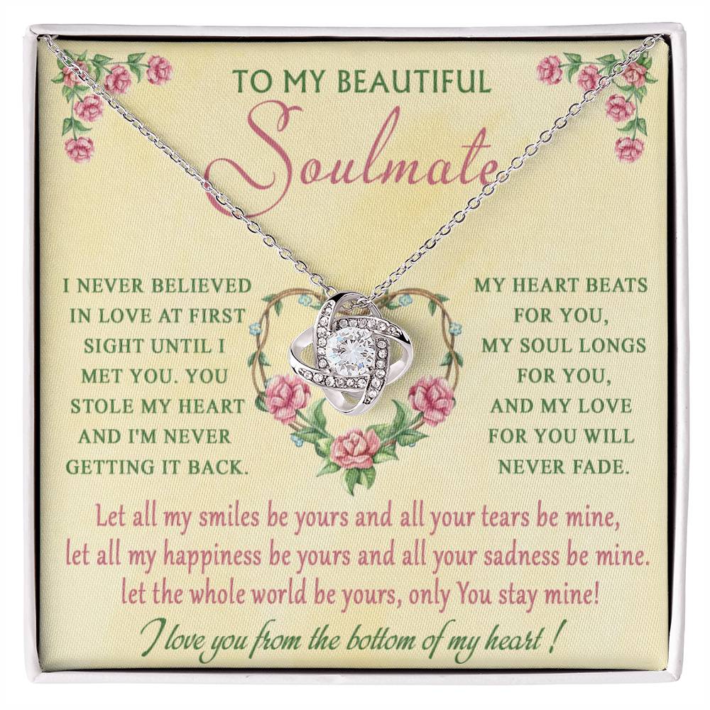 Imagine her reaction receiving this beautiful Love Knot Necklace. Representing an unbreakable bond between two souls, this piece features a beautiful pendant embellished with premium cubic zirconia crystals. Surprise your loved one with this gorgeous gift today!