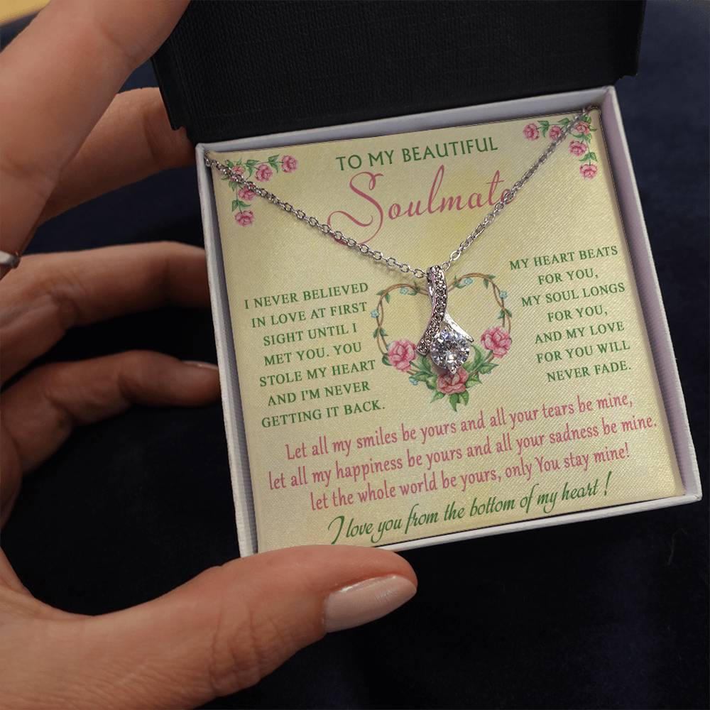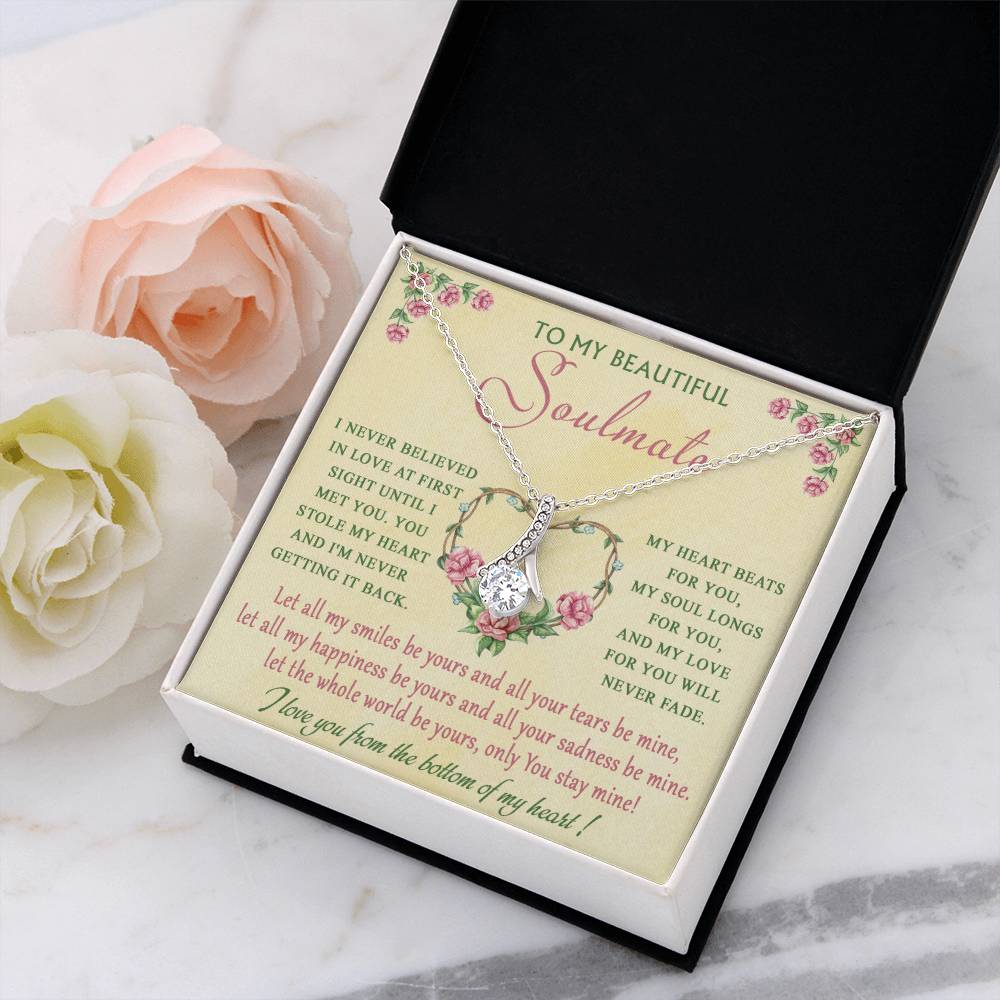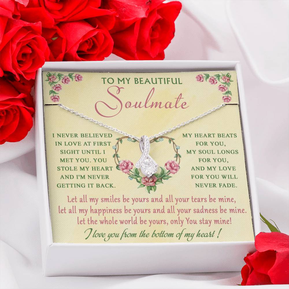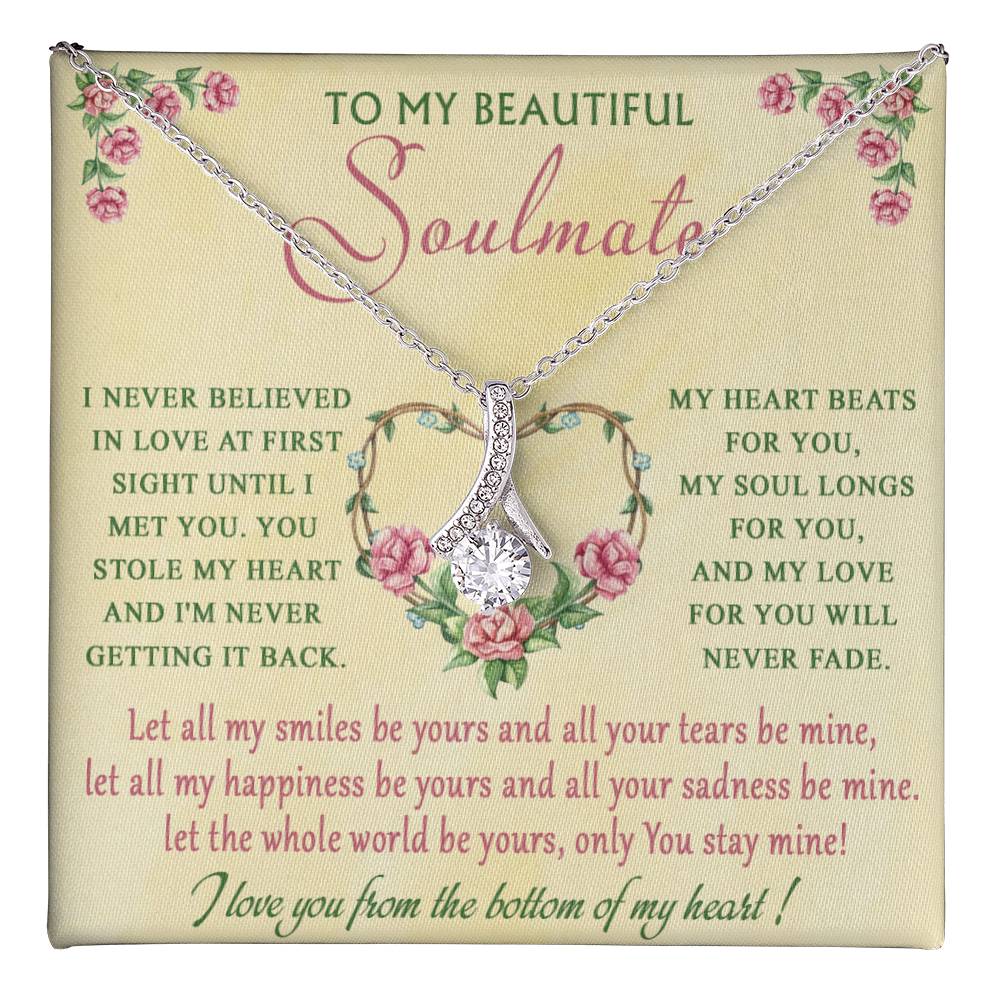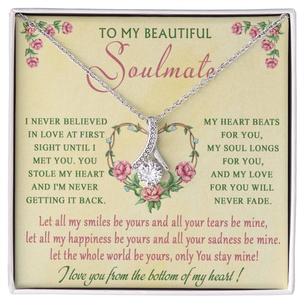 Imagine her reaction when she opens this stunning gift! The Alluring Beauty necklace features a petite ribbon shaped pendant that is sure to dazzle your special someone. Whether it's a birthday or anniversary, make sure to get her a gift she will love for years to come.