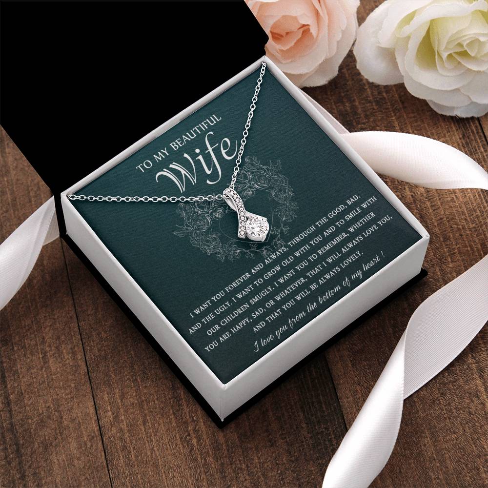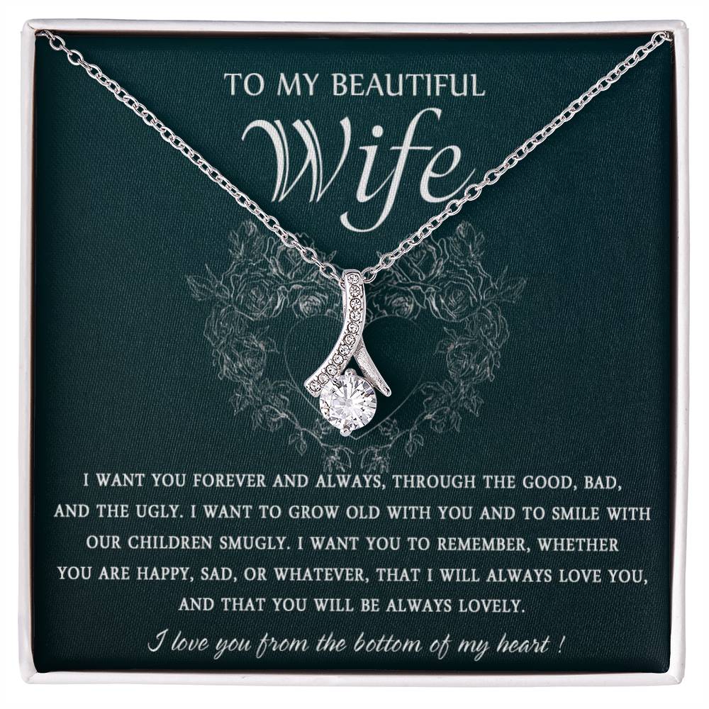 Imagine her reaction when she opens this stunning gift! The Alluring Beauty necklace features a petite ribbon shaped pendant that is sure to dazzle your special someone. Whether it's a birthday or anniversary, make sure to get her a gift she will love for years to come.