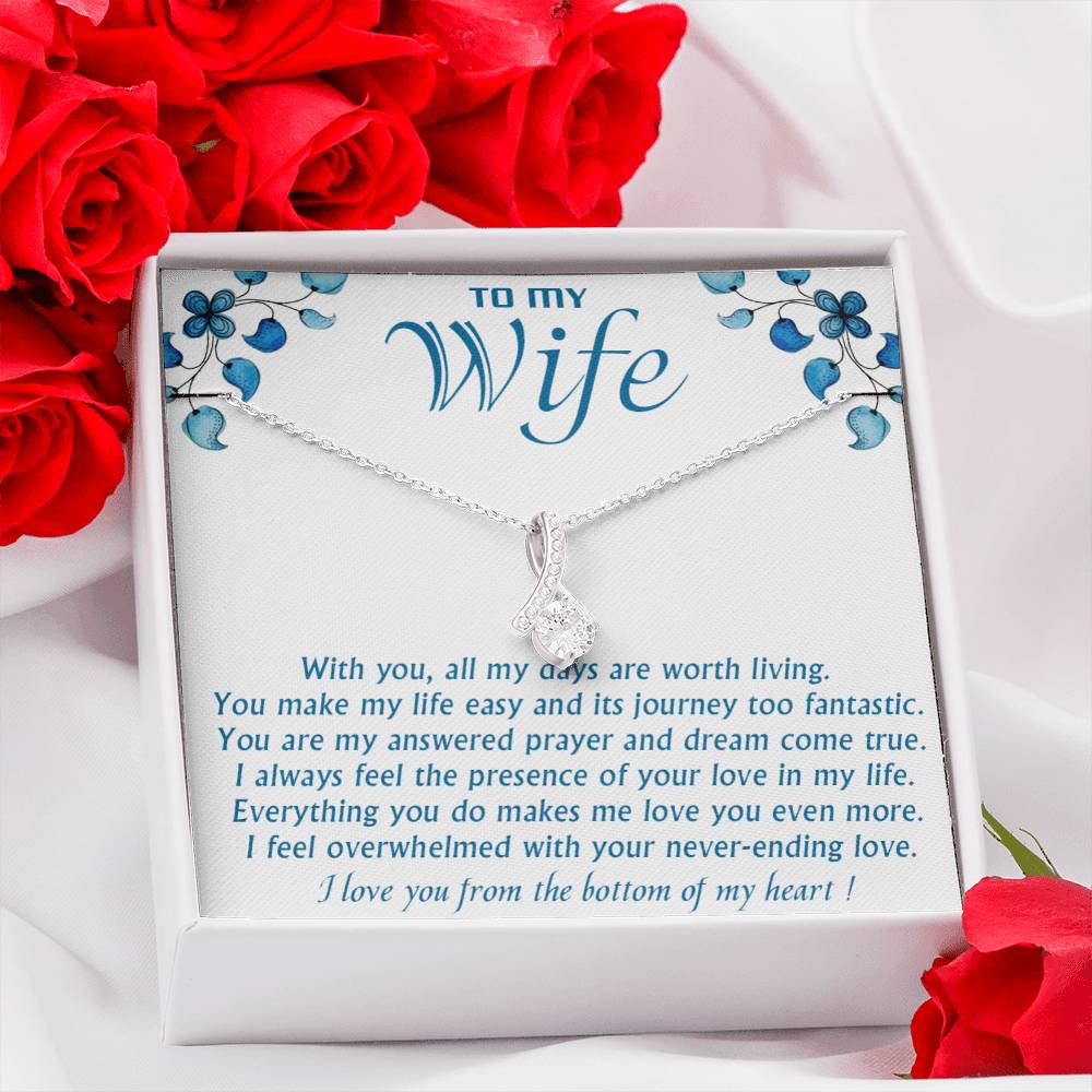 Imagine her reaction when she opens this stunning gift! The Alluring Beauty necklace features a petite ribbon shaped pendant that is sure to dazzle your special someone. Whether it's a birthday or anniversary, make sure to get her a gift she will love for years to come.