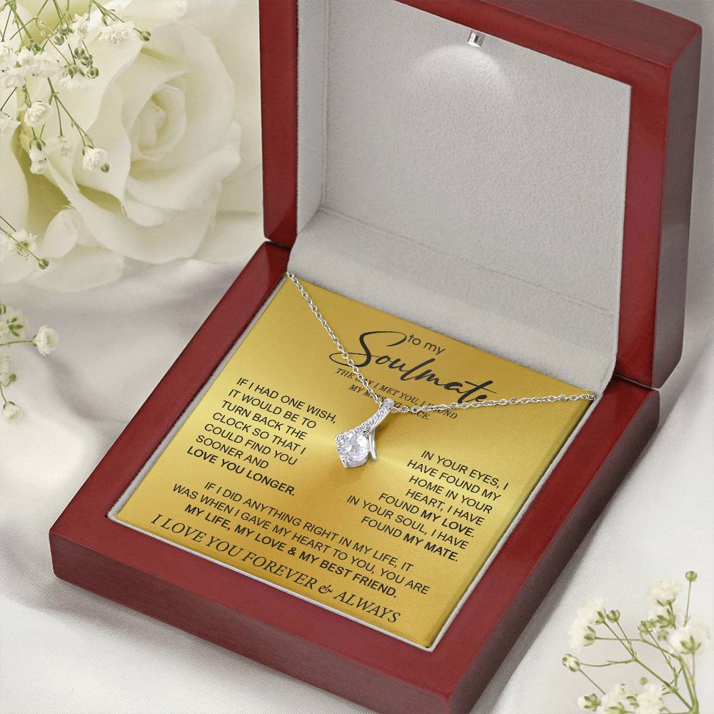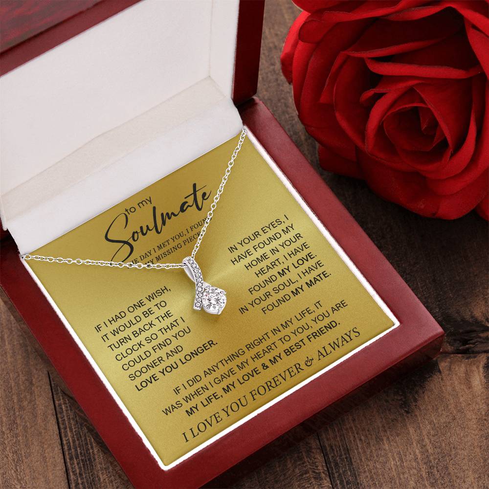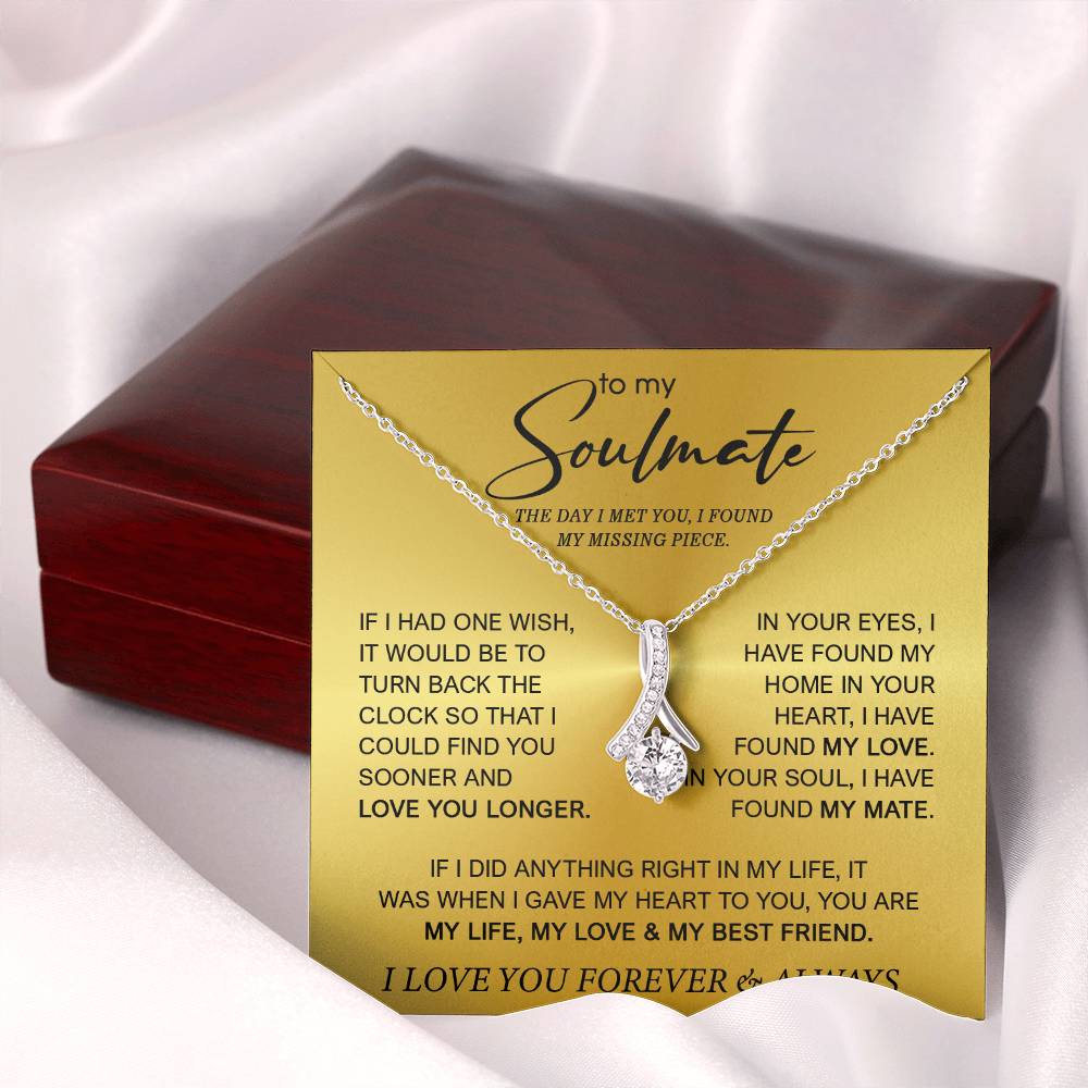 Imagine her reaction when she opens this stunning gift! The Alluring Beauty necklace features a petite ribbon shaped pendant that is sure to dazzle your special someone. Whether it's a birthday or anniversary, make sure to get her a gift she will love for years to come.