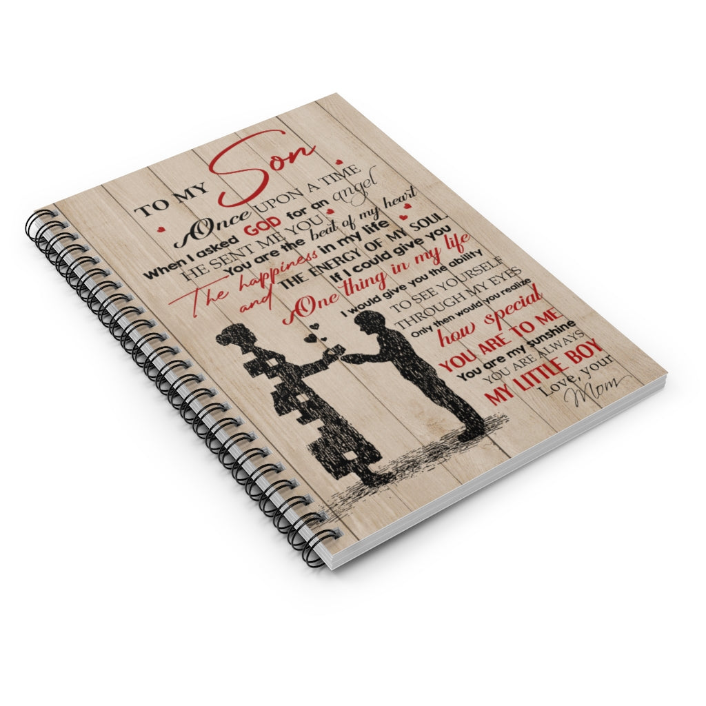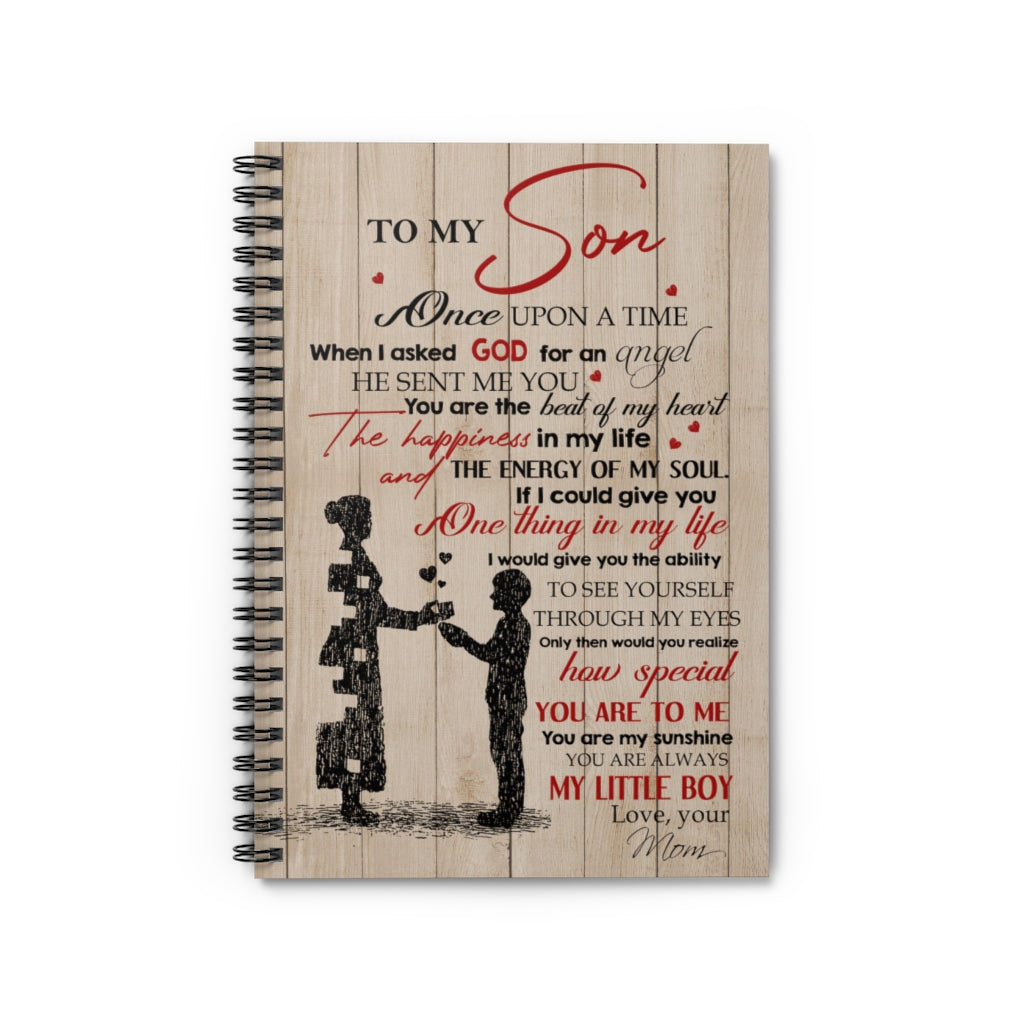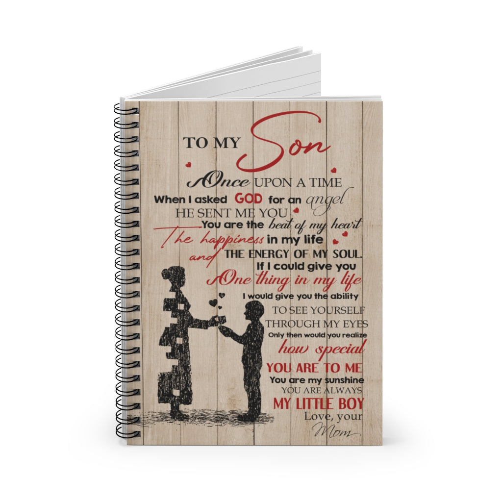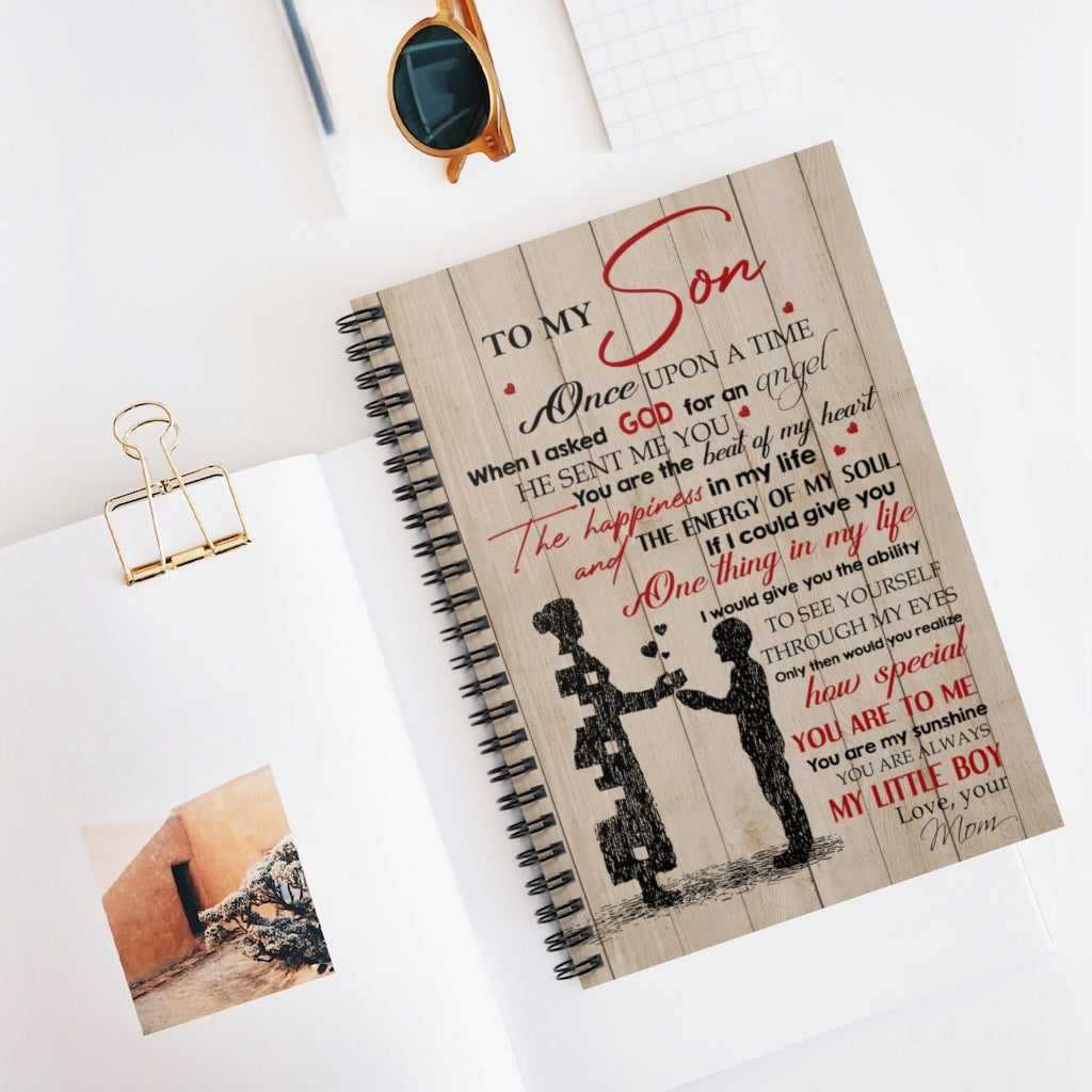 Spiral Notebook Meaningful Quote to My Son When I Asked God for an Angel He Sent Me You Gift for Man Woman Kitchen Wall Art Home, Man Woman Girl's Ruled Line