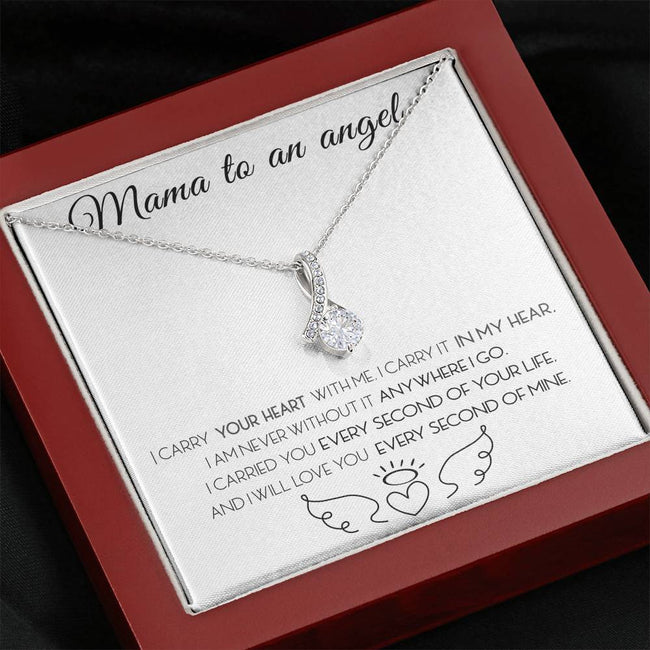 Melt her heart with this ALLURING BEAUTY necklace gift! The petite ribbon shaped pendant is finished with 14K white gold over stainless steel, and is embellished with dainty clear crystals surrounded by a sparkling 7mm round cut Cubic Zirconia.
