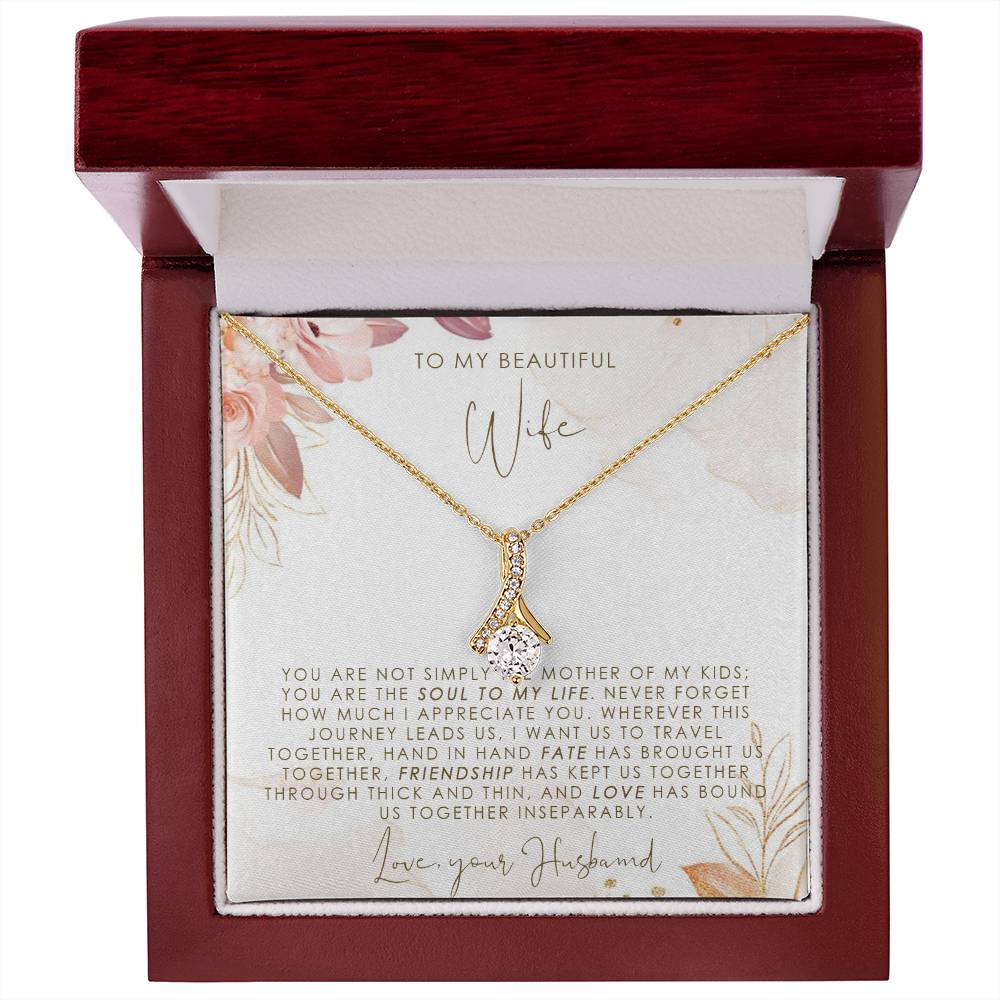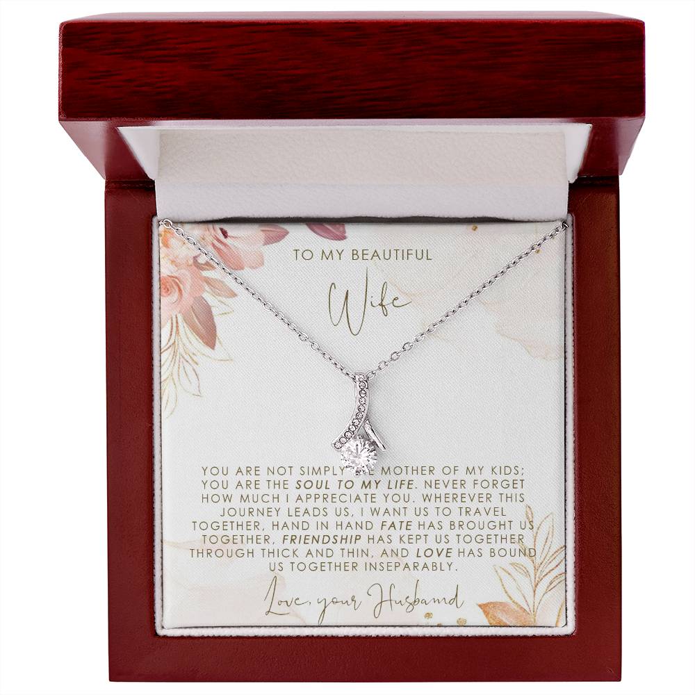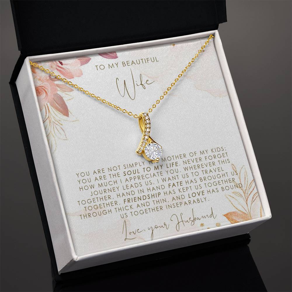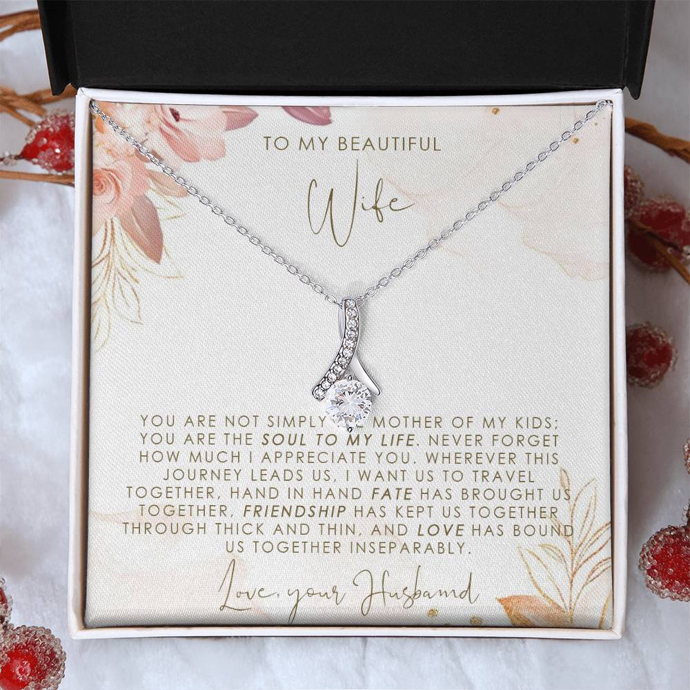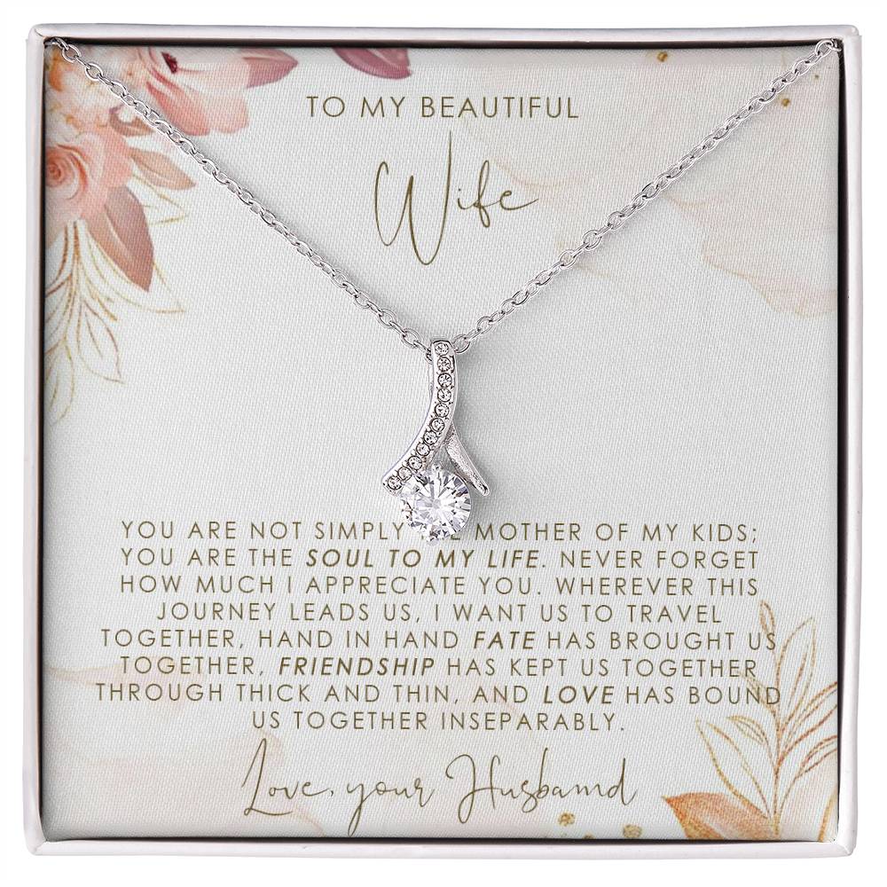Imagine her reaction when she opens this stunning gift! The Alluring Beauty necklace features a petite ribbon shaped pendant that is sure to dazzle your special someone. Whether it's a birthday or anniversary, make sure to get her a gift she will love for years to come.
