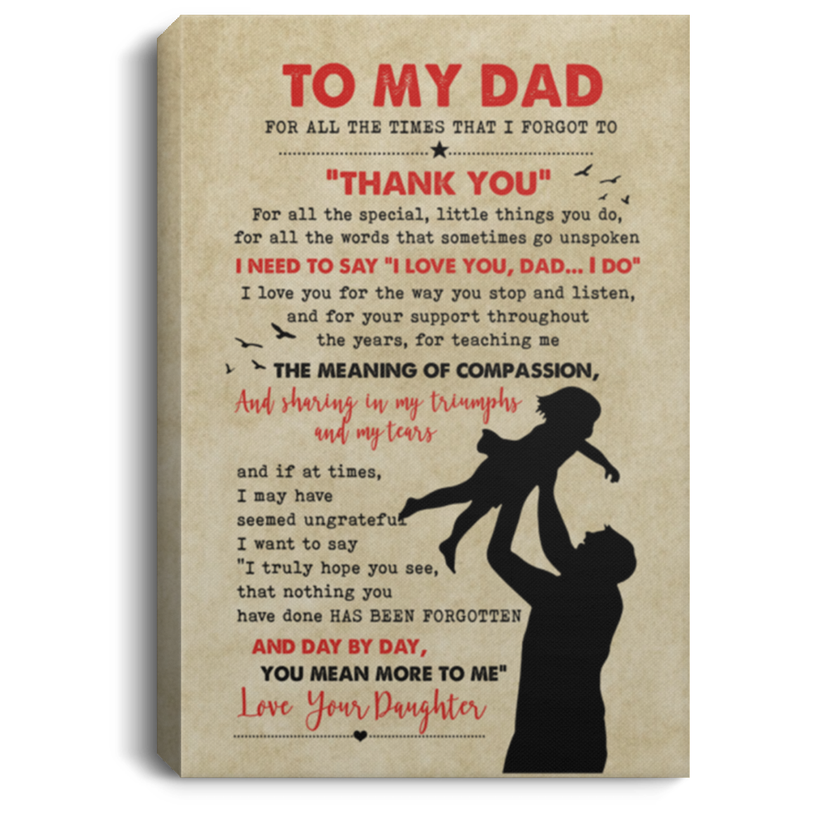 to My Dad from Daughter Canvas Framed Wood Dad Daughter Thank for All The Times That I Forgot to Thank You Gift Family Unisex Awesome On Birthday, Decor Home Durable Print 12x18 CANPO75 Portrait Canvas .75in Frame