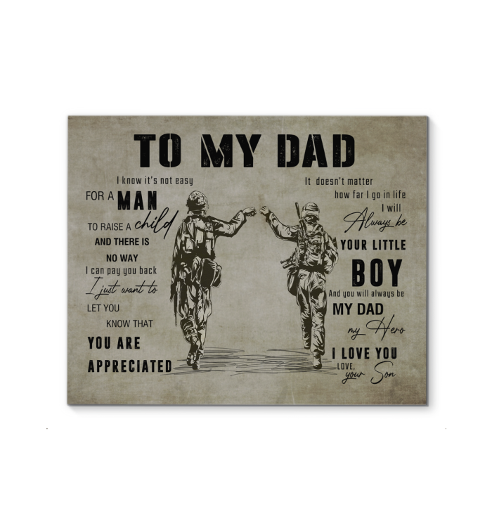 to My Dad Gift from Son Army Military Soldier - Father's Day Poster (Art Wall Canvas Framed Poster, 20 x 16)