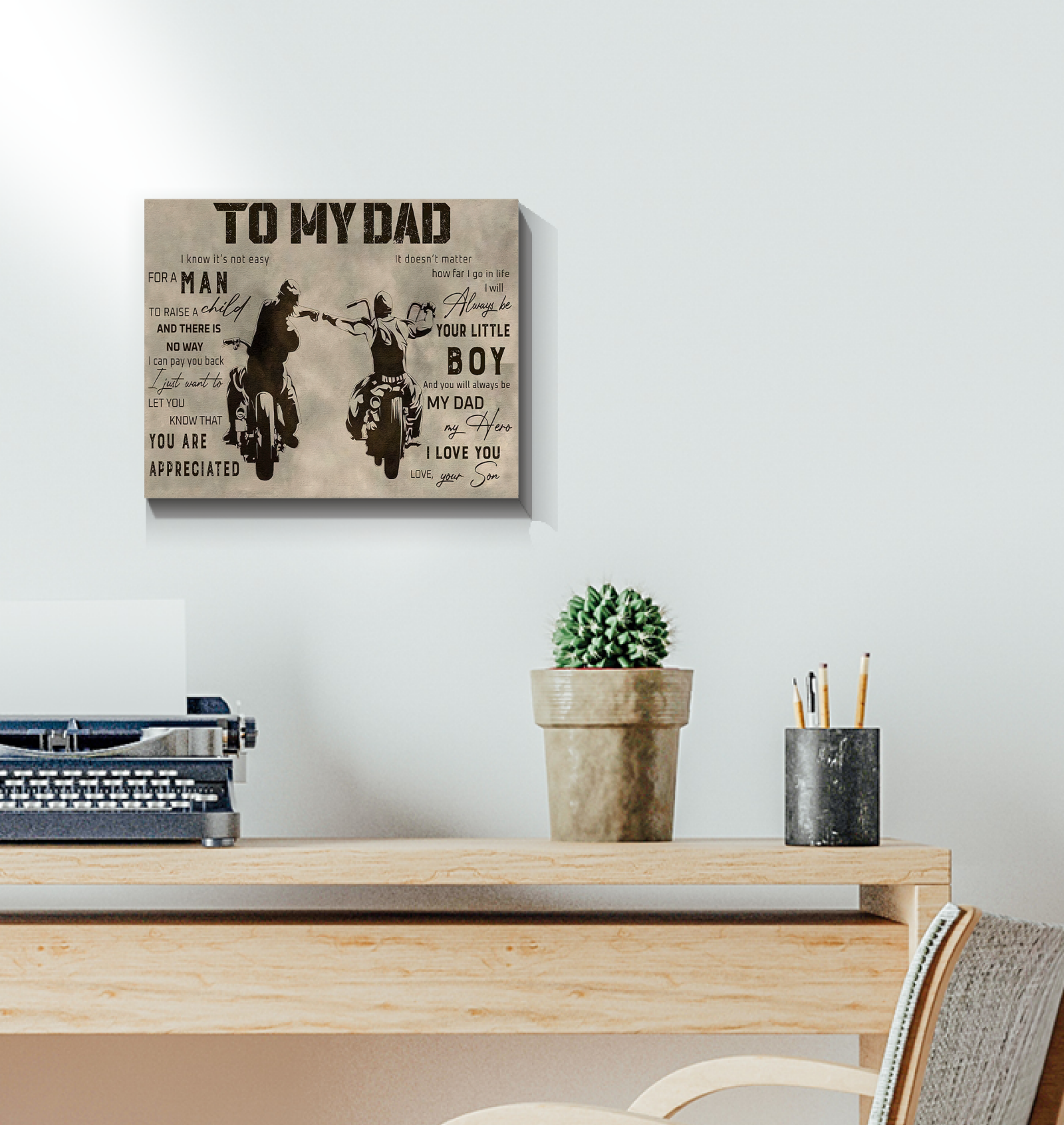 to My Dad Gift from Son Large Motorcycle Father's Day Retro Poster (Canvas Framed, 14x11)