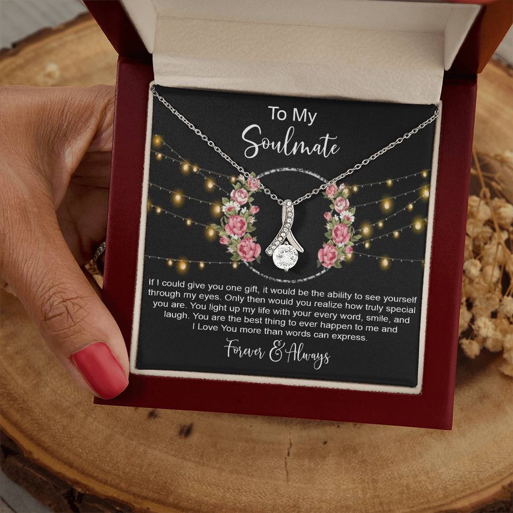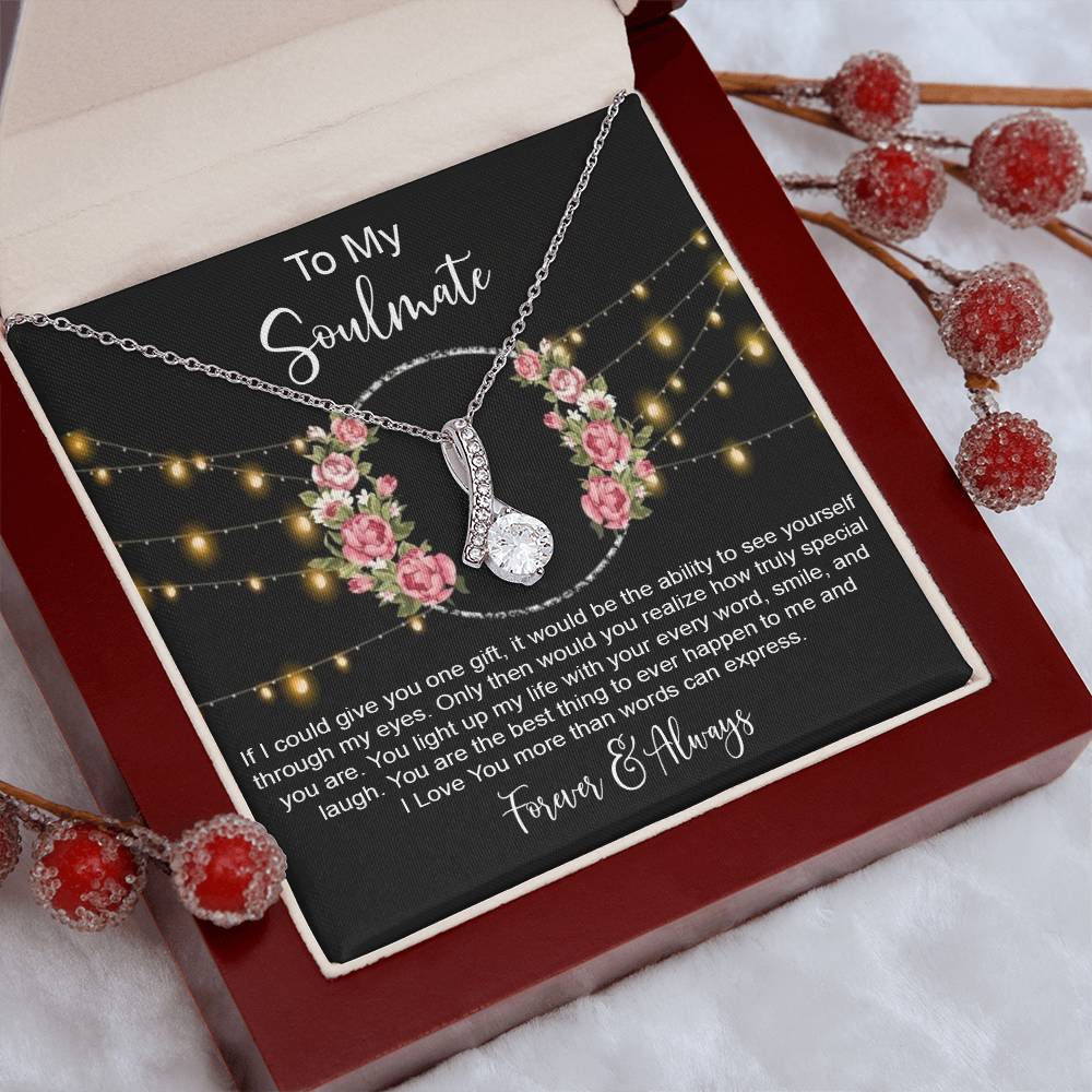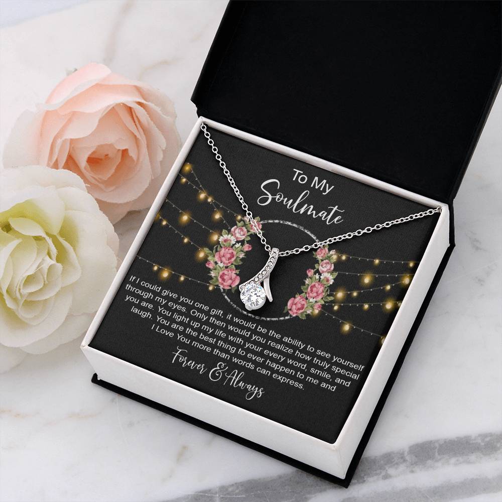 Imagine her reaction when she opens this stunning gift! The Alluring Beauty necklace features a petite ribbon shaped pendant that is sure to dazzle your special someone. Whether it's a birthday or anniversary, make sure to get her a gift she will love for years to come.