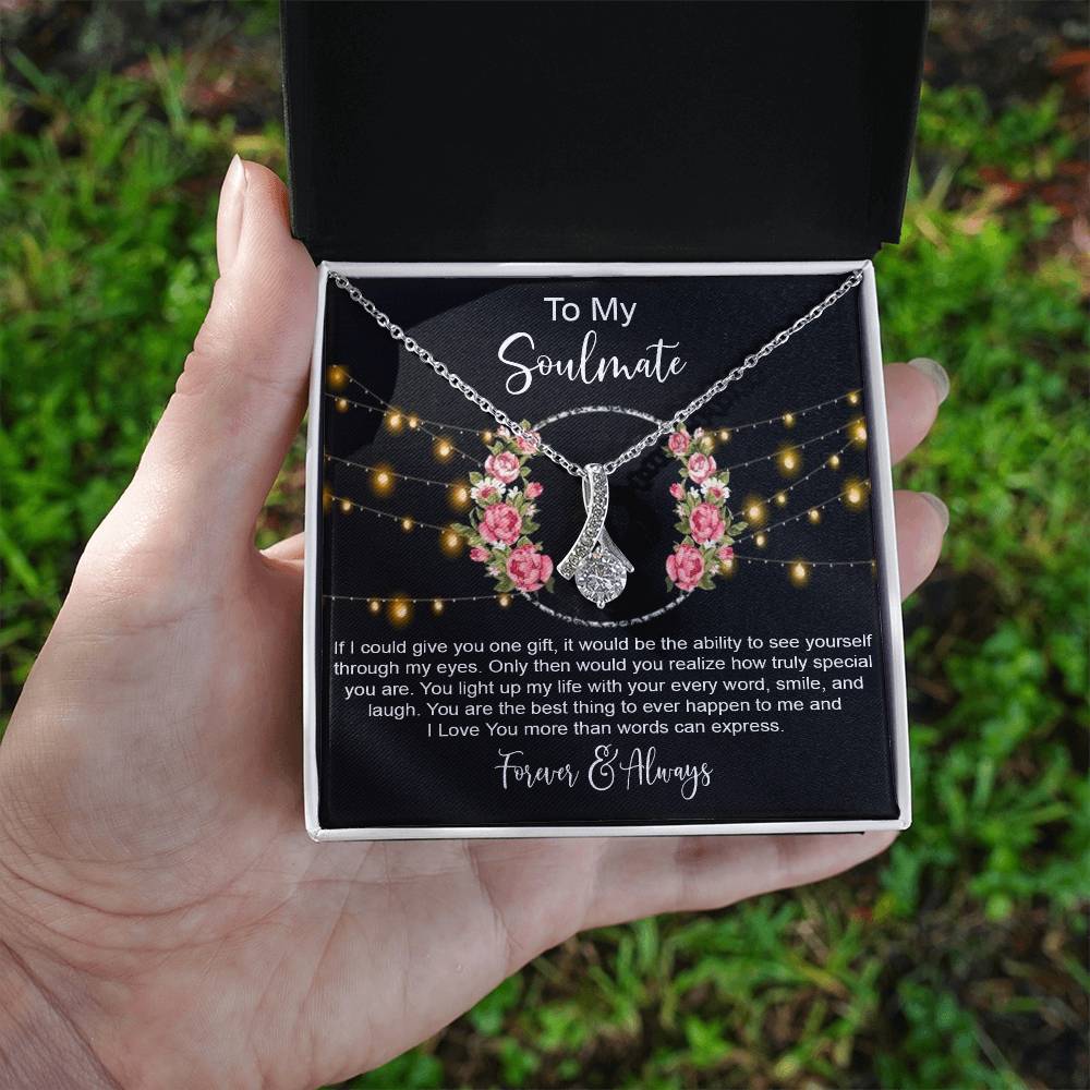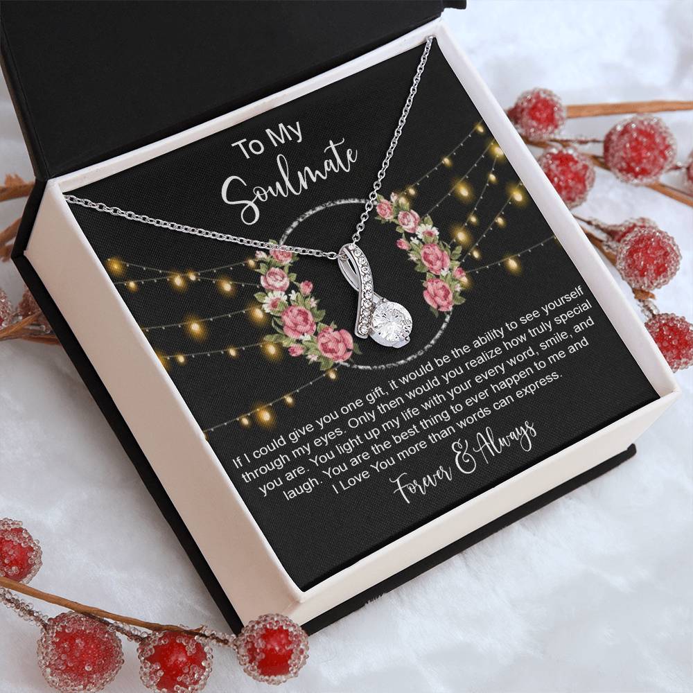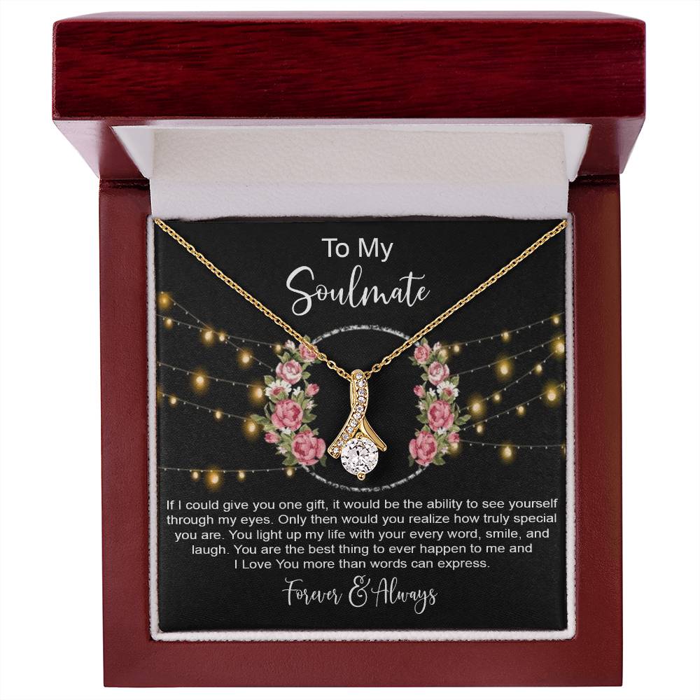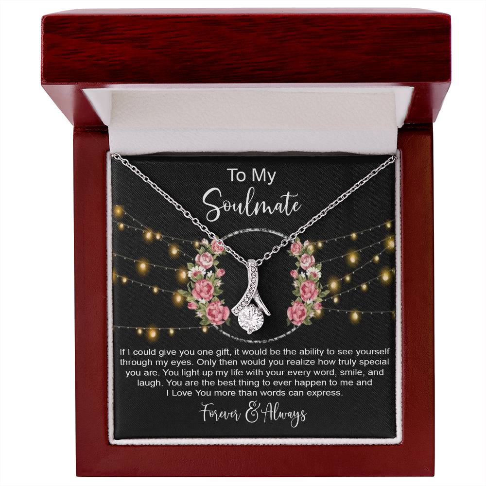 Imagine her reaction when she opens this stunning gift! The Alluring Beauty necklace features a petite ribbon shaped pendant that is sure to dazzle your special someone. Whether it's a birthday or anniversary, make sure to get her a gift she will love for years to come.