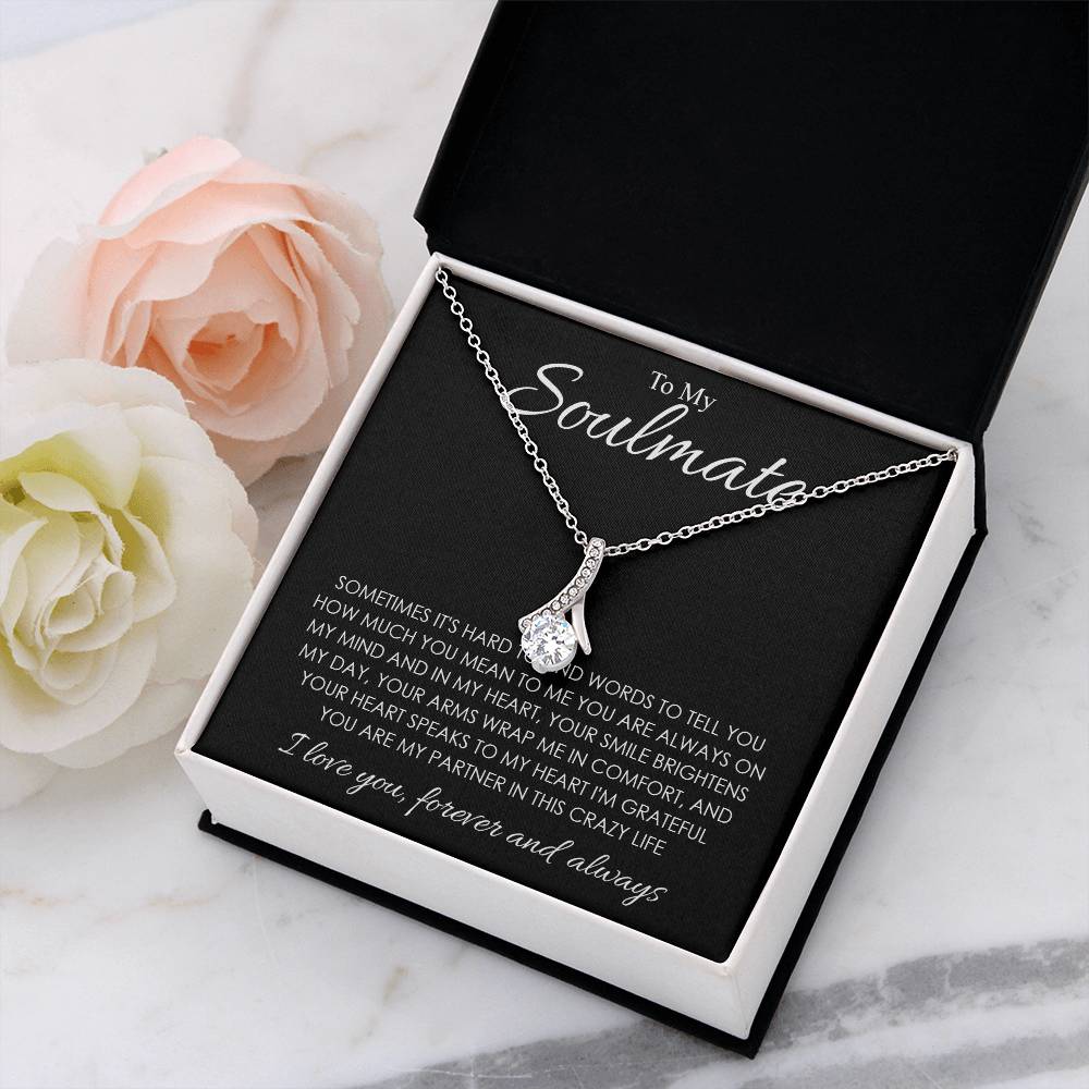 Imagine her reaction when she opens this stunning gift! The Alluring Beauty necklace features a petite ribbon shaped pendant that is sure to dazzle your special someone. Whether it's a birthday or anniversary, make sure to get her a gift she will love for years to come.