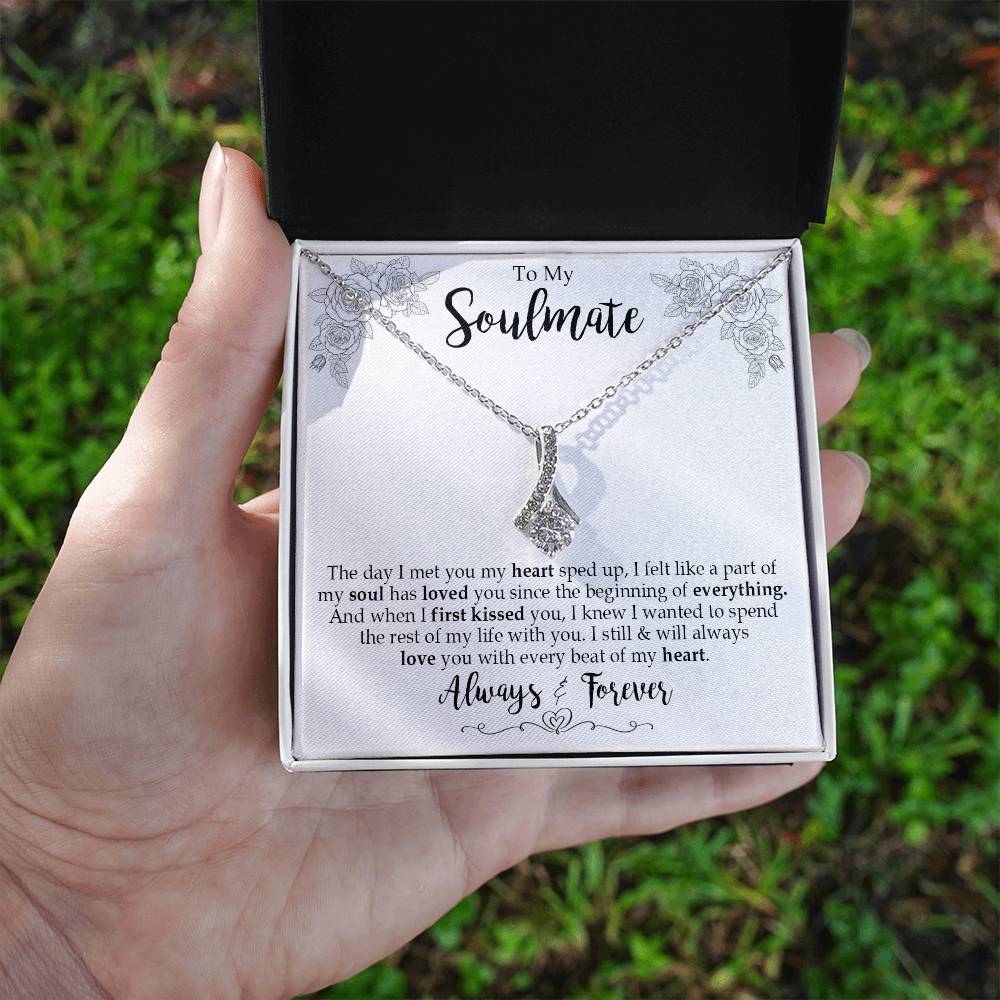 Imagine her reaction when she opens this stunning gift! The Alluring Beauty necklace features a petite ribbon shaped pendant that is sure to dazzle your special someone. Whether it's a birthday or anniversary, make sure to get her a gift she will love for years to come.