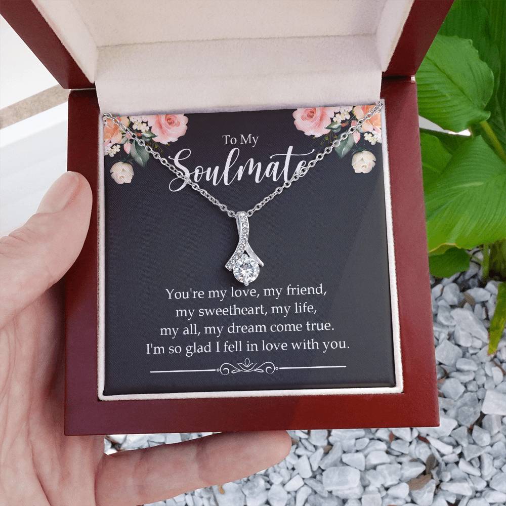 Imagine her reaction when she opens this stunning gift! The Alluring Beauty necklace features a petite ribbon shaped pendant that is sure to dazzle your special someone. Whether it's a birthday or anniversary, make sure to get her a gift she will love for years to come.