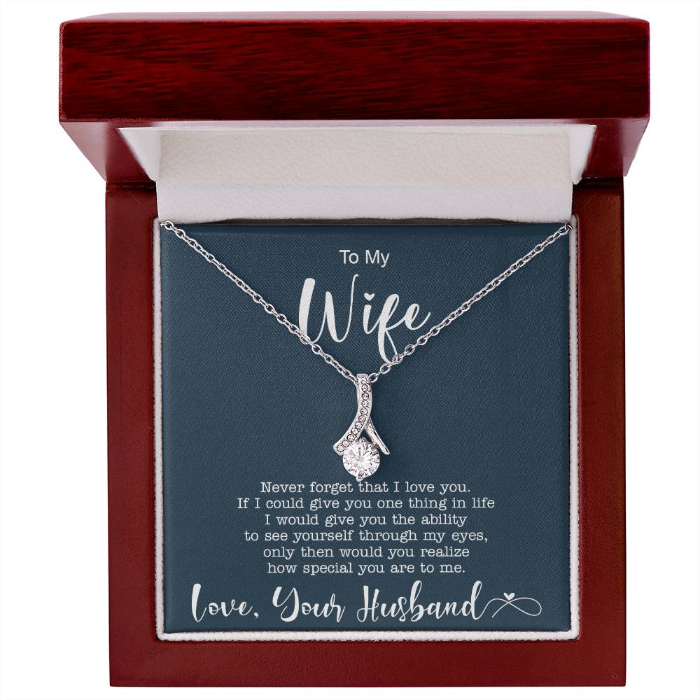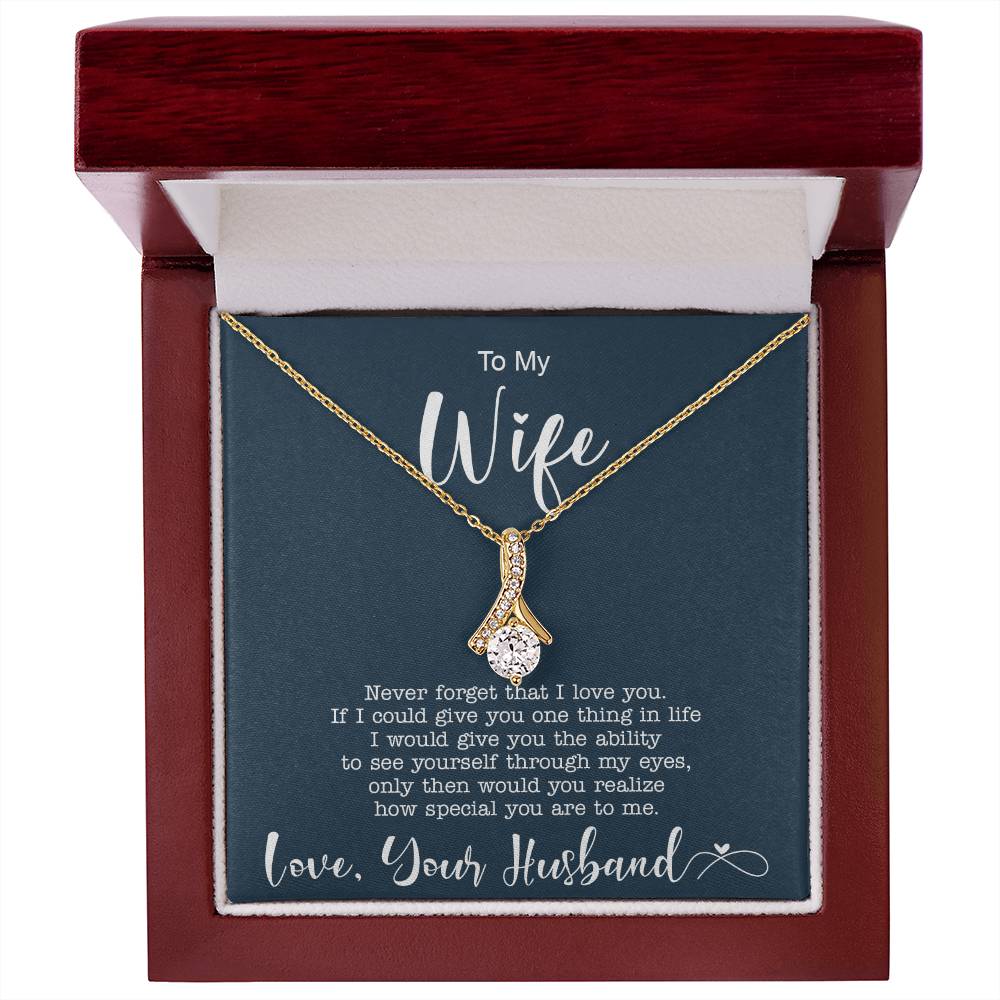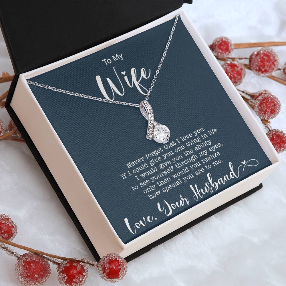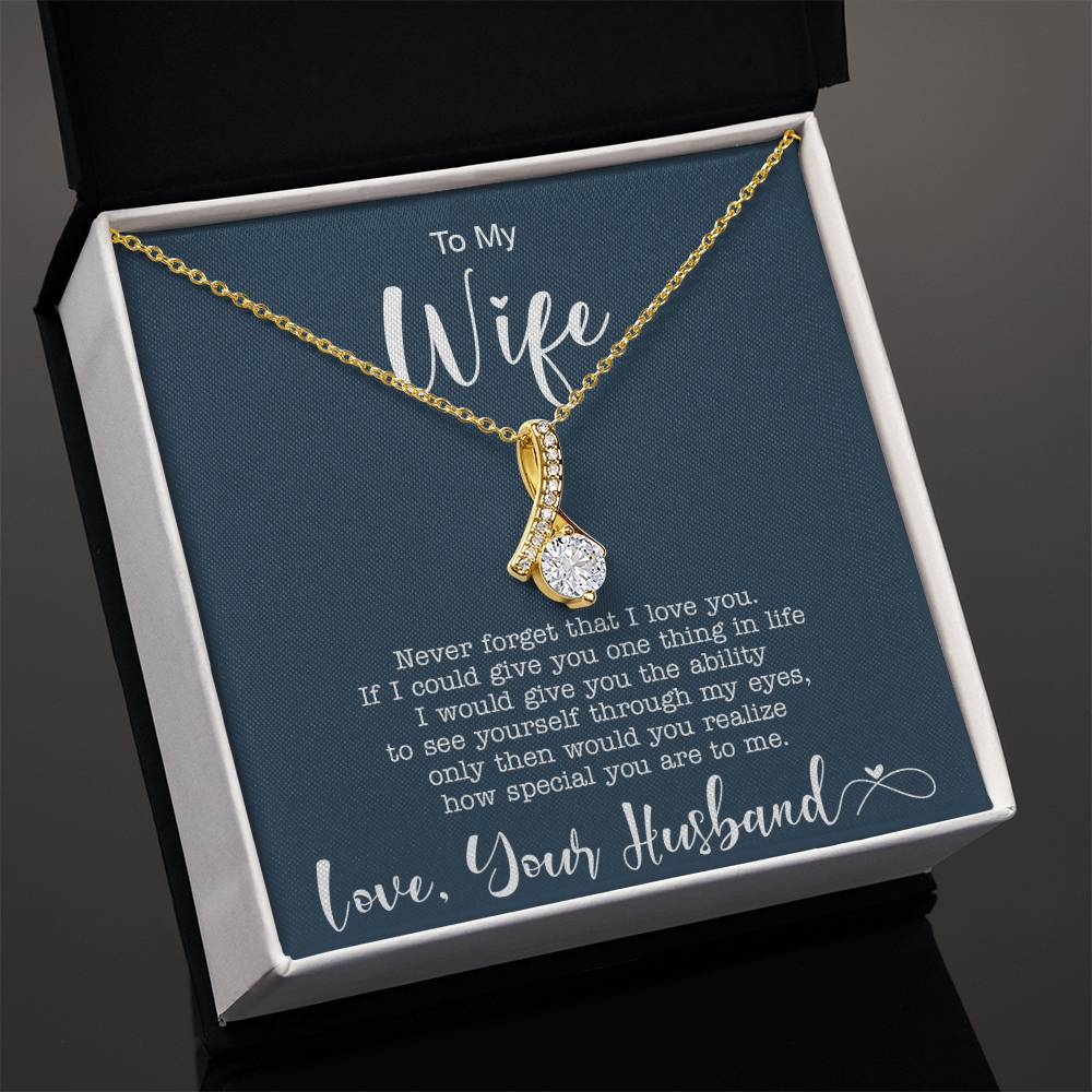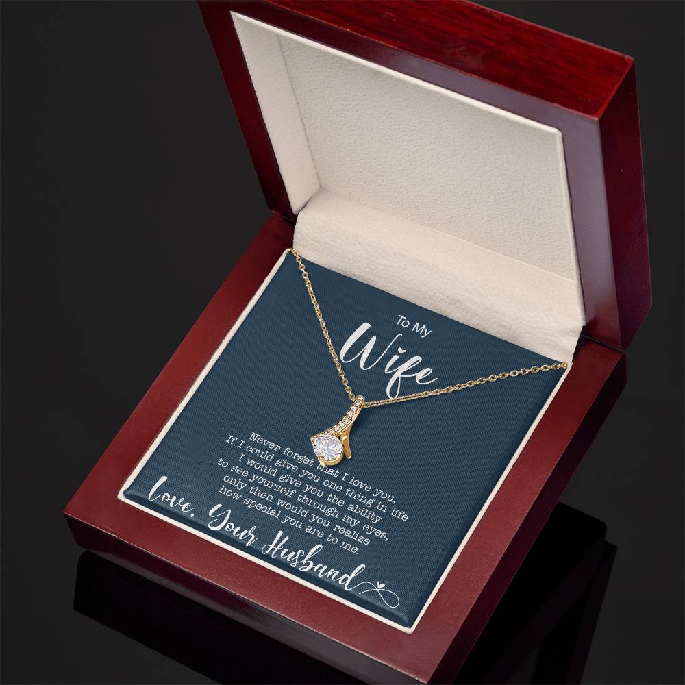 Imagine her reaction when she opens this stunning gift! The Alluring Beauty necklace features a petite ribbon shaped pendant that is sure to dazzle your special someone. Whether it's a birthday or anniversary, make sure to get her a gift she will love for years to come.
