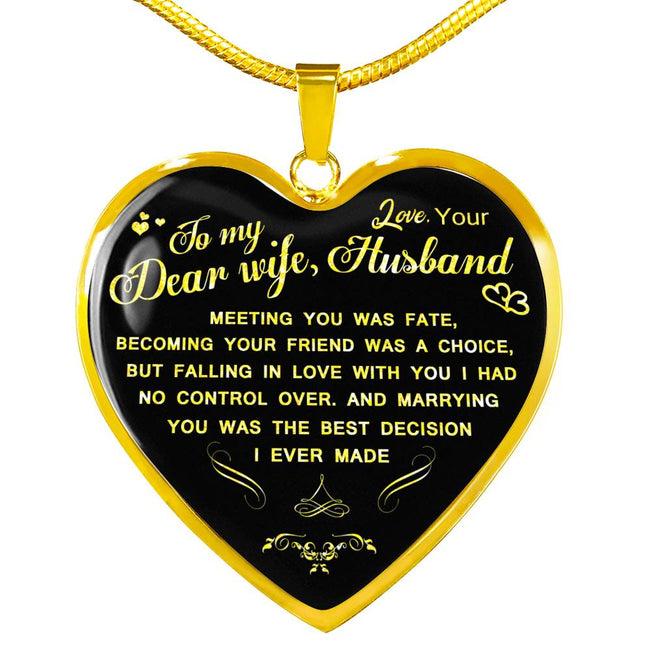 TO MY WIFE Love Husband Necklace Heart Pendant Luxury Jewelry Gift Valentine n-05.12