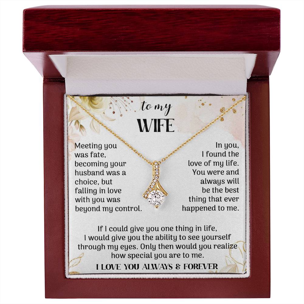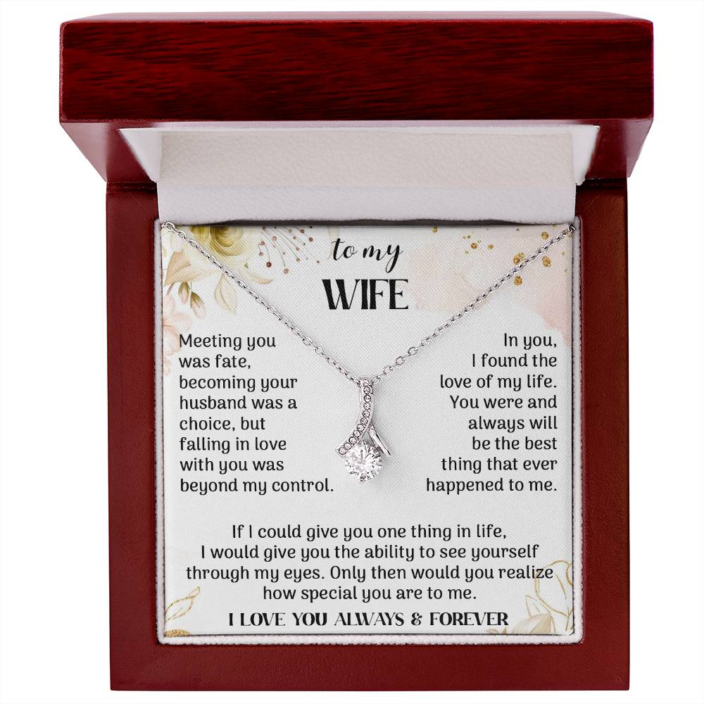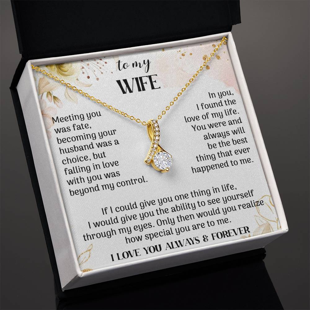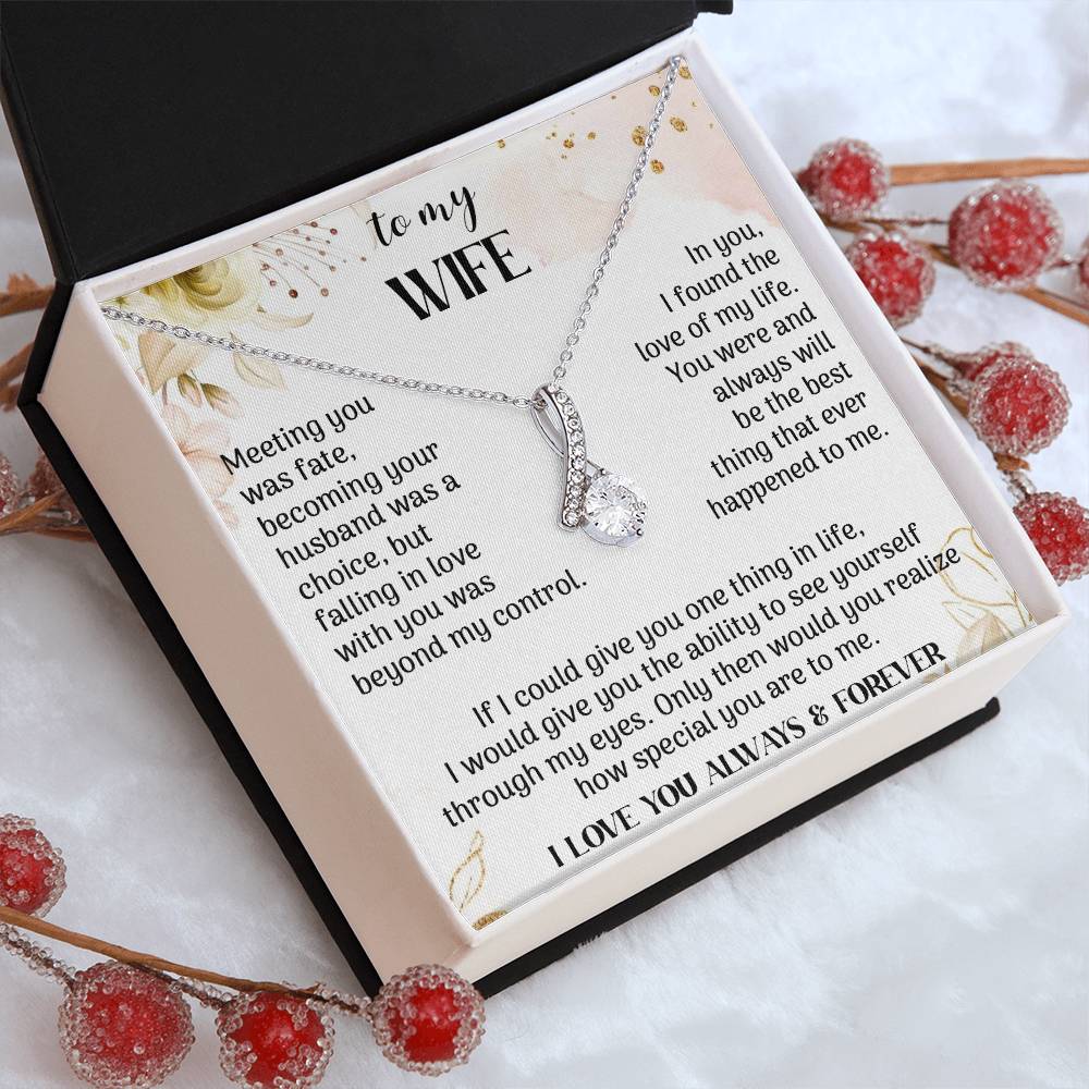 Imagine her reaction when she opens this stunning gift! The Alluring Beauty necklace features a petite ribbon shaped pendant that is sure to dazzle your special someone. Whether it's a birthday or anniversary, make sure to get her a gift she will love for years to come.