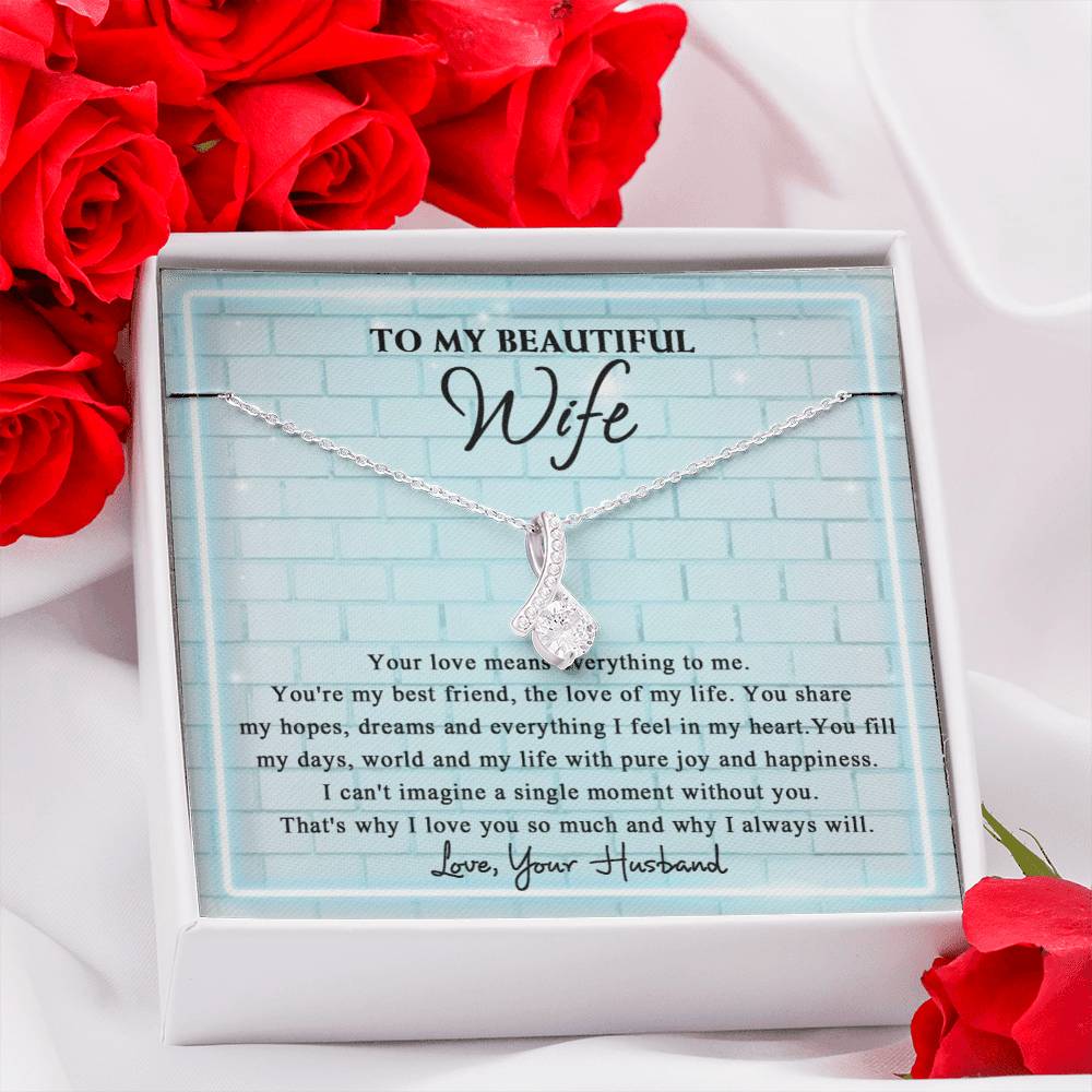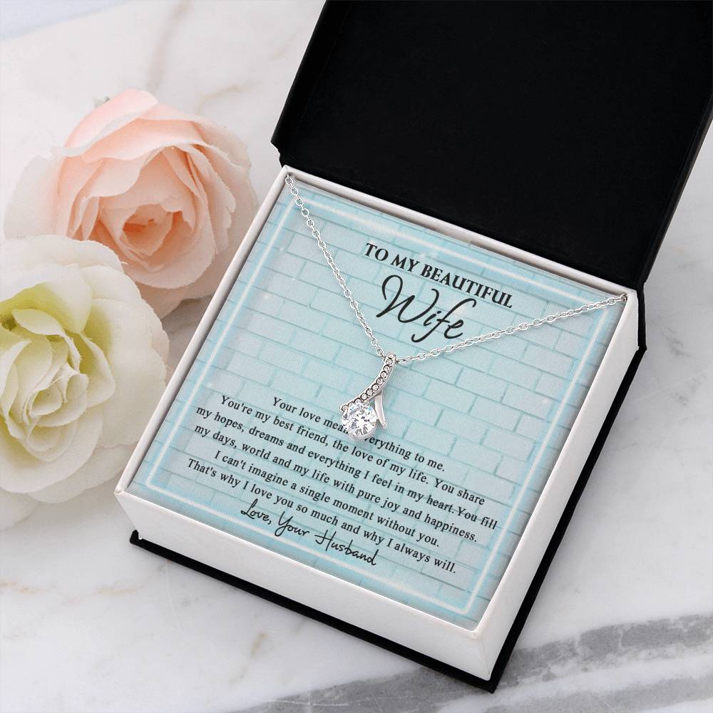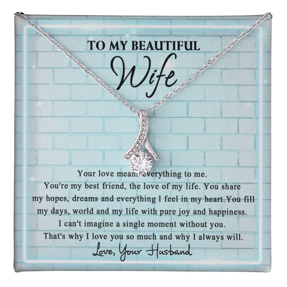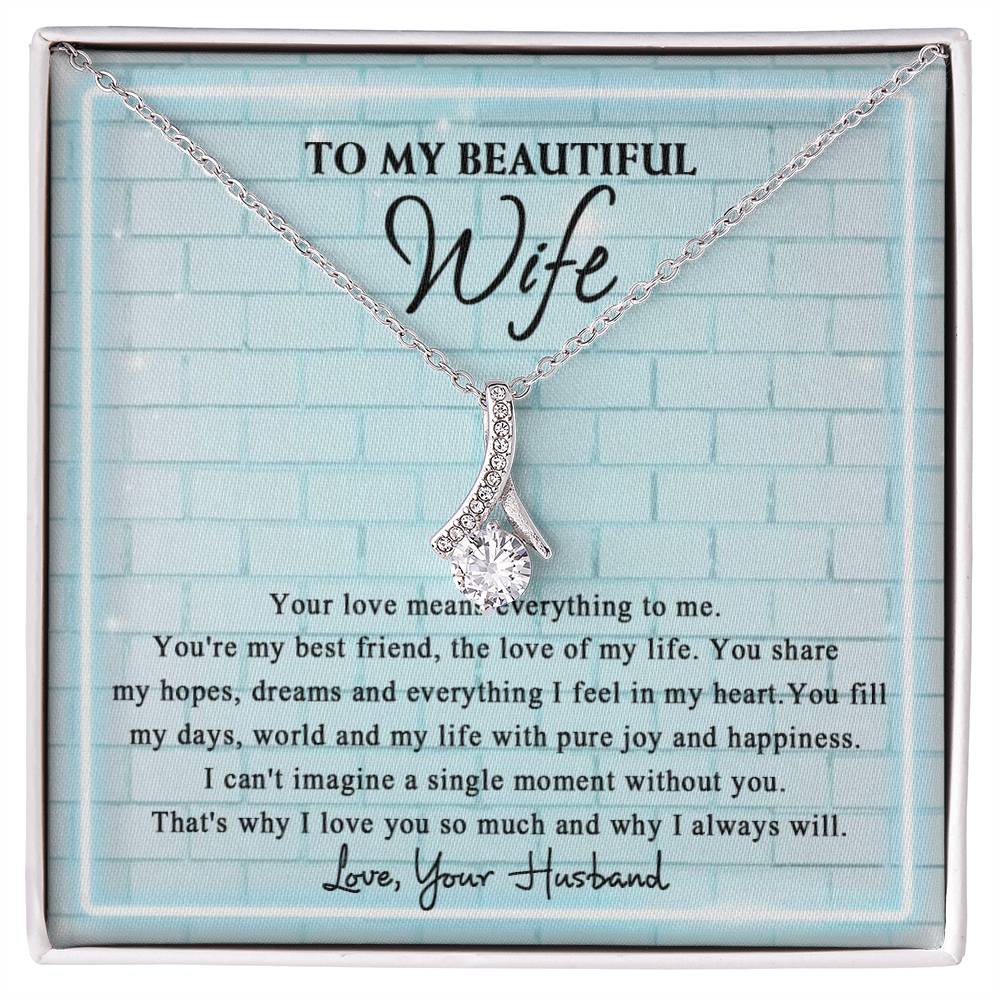Imagine her reaction when she opens this stunning gift! The Alluring Beauty necklace features a petite ribbon shaped pendant that is sure to dazzle your special someone. Whether it's a birthday or anniversary, make sure to get her a gift she will love for years to come.