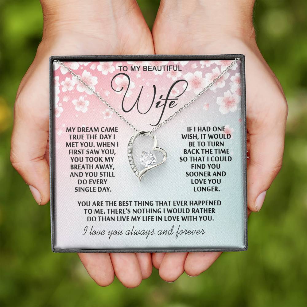The dazzling Forever Love Necklace is sure to make her heart melt! This necklace features a stunning 6.5mm CZ crystal surrounded by a polished heart pendant embellished with smaller crystals to add extra sparkle and shine. Beautifully crafted with either a white gold or yellow gold finish, be sure to give her a classic gift she can enjoy everyday.