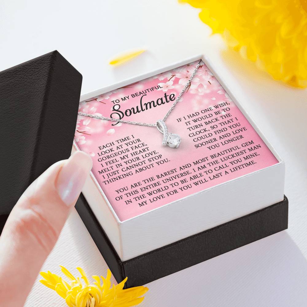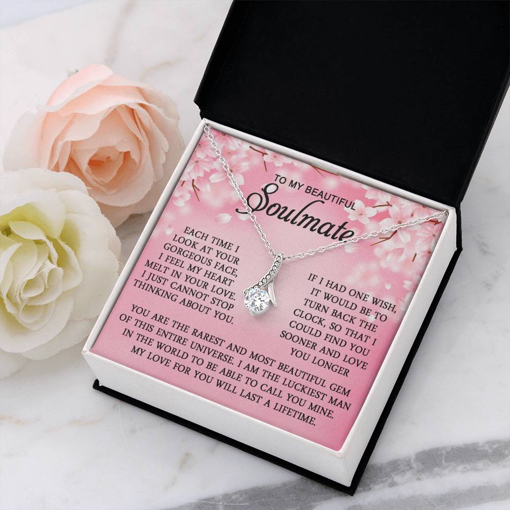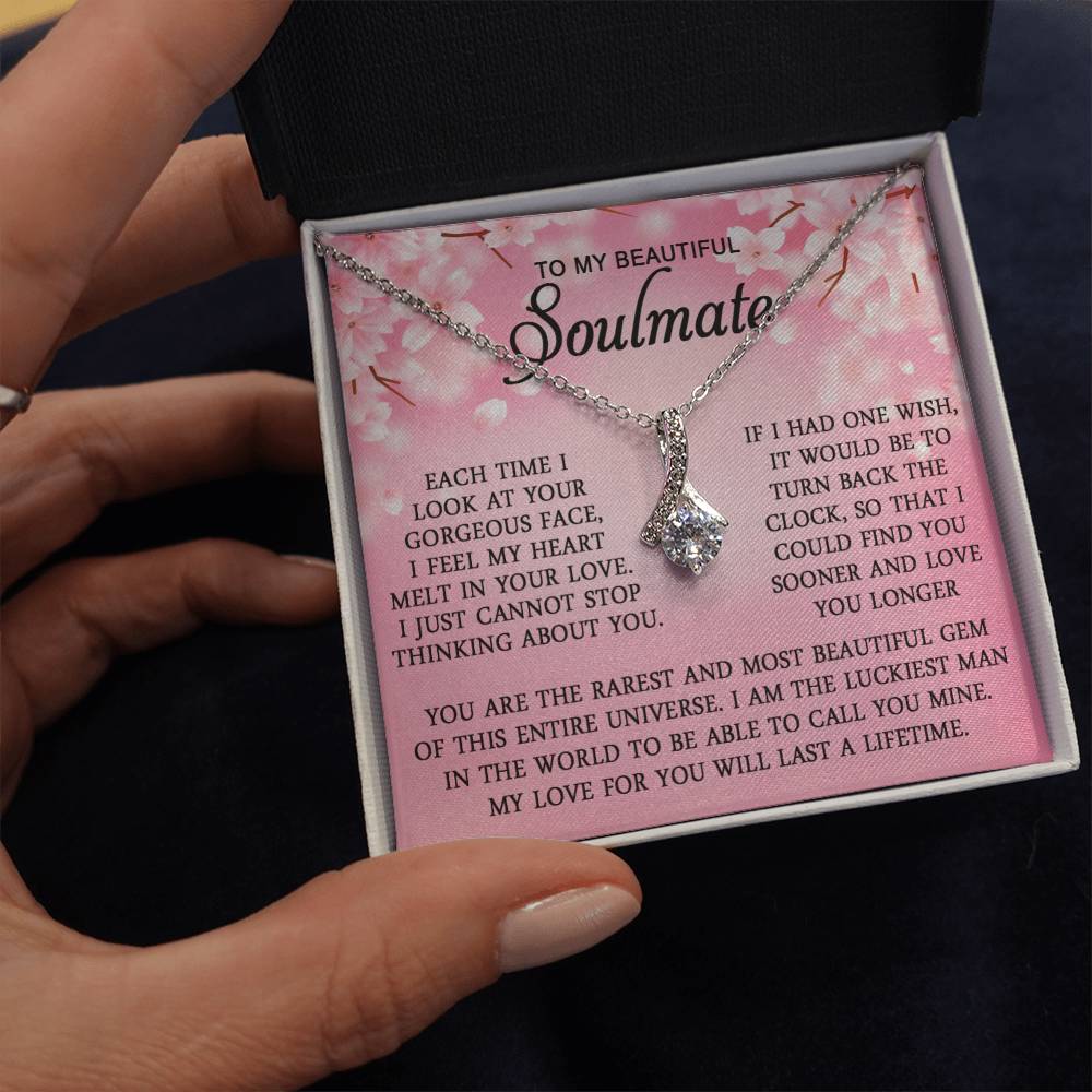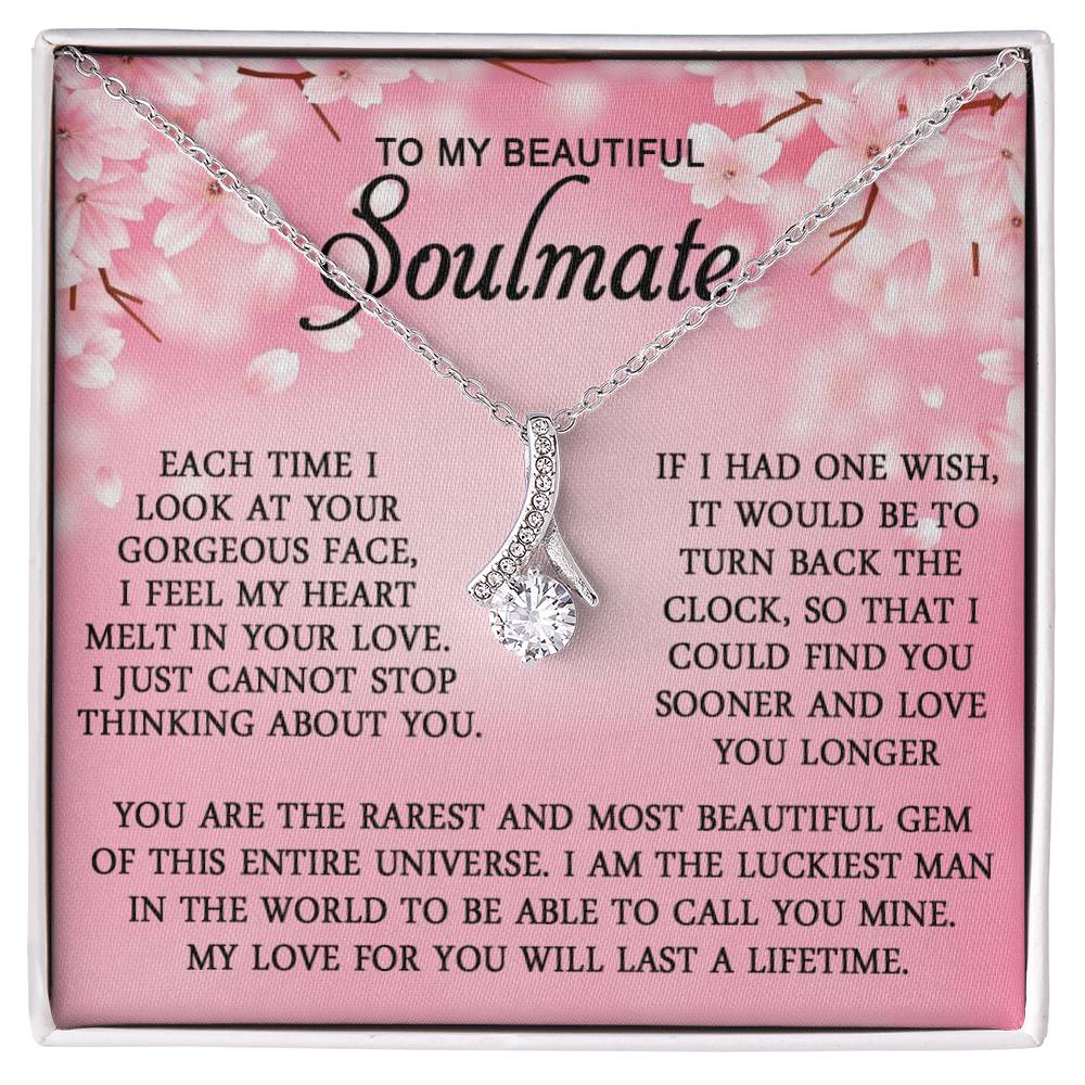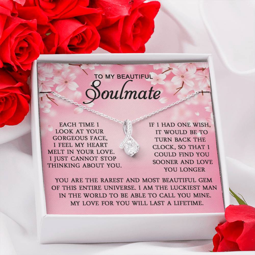 Imagine her reaction when she opens this stunning gift! The Alluring Beauty necklace features a petite ribbon shaped pendant that is sure to dazzle your special someone. Whether it's a birthday or anniversary, make sure to get her a gift she will love for years to come.