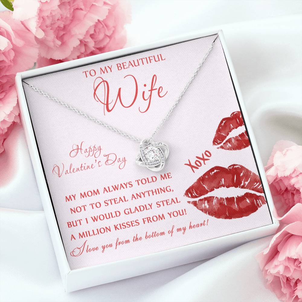 Imagine her reaction receiving this beautiful Love Knot Necklace. Representing an unbreakable bond between two souls, this piece features a beautiful pendant embellished with premium cubic zirconia crystals. Surprise your loved one with this gorgeous gift today!