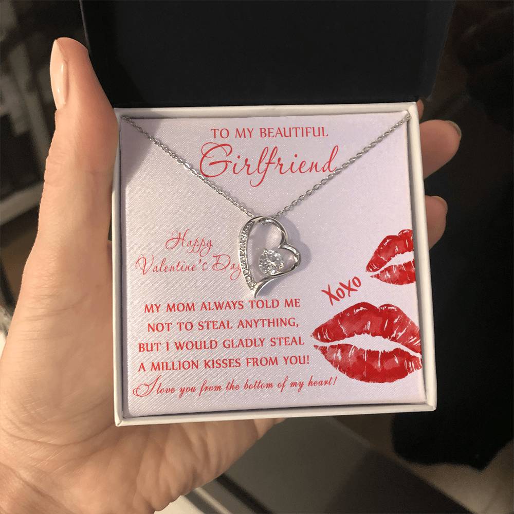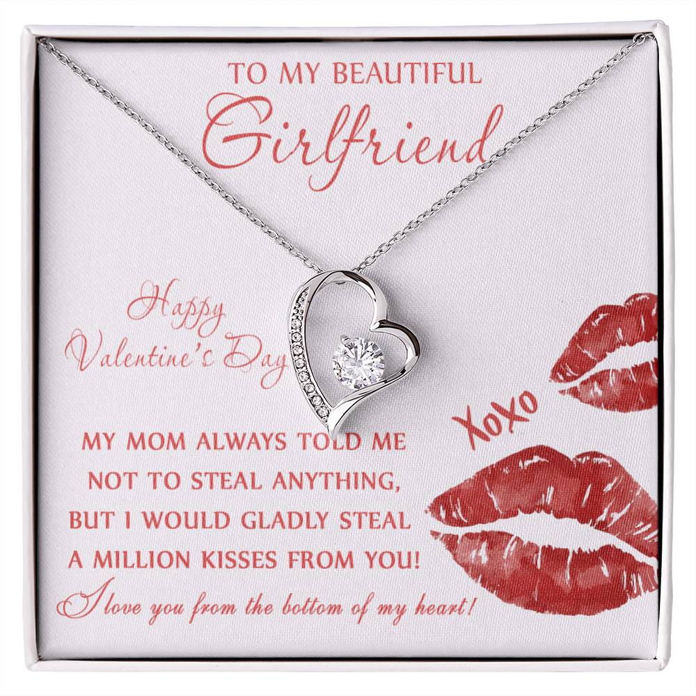 The dazzling Forever Love Necklace is sure to make her heart melt! This necklace features a stunning 6.5mm CZ crystal surrounded by a polished heart pendant embellished with smaller crystals to add extra sparkle and shine. Beautifully crafted with either a white gold or yellow gold finish, be sure to give her a classic gift she can enjoy everyday.