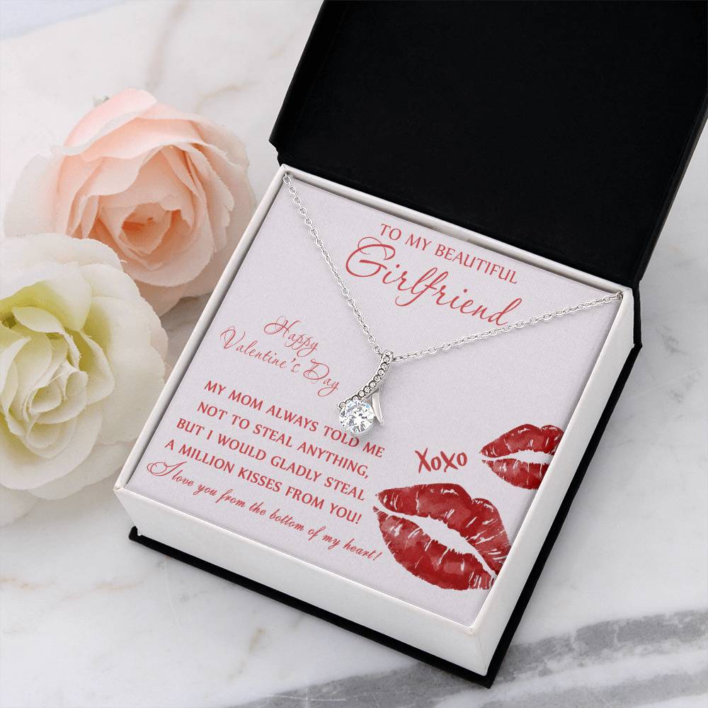 Imagine her reaction when she opens this stunning gift! The Alluring Beauty necklace features a petite ribbon shaped pendant that is sure to dazzle your special someone. Whether it's a birthday or anniversary, make sure to get her a gift she will love for years to come.