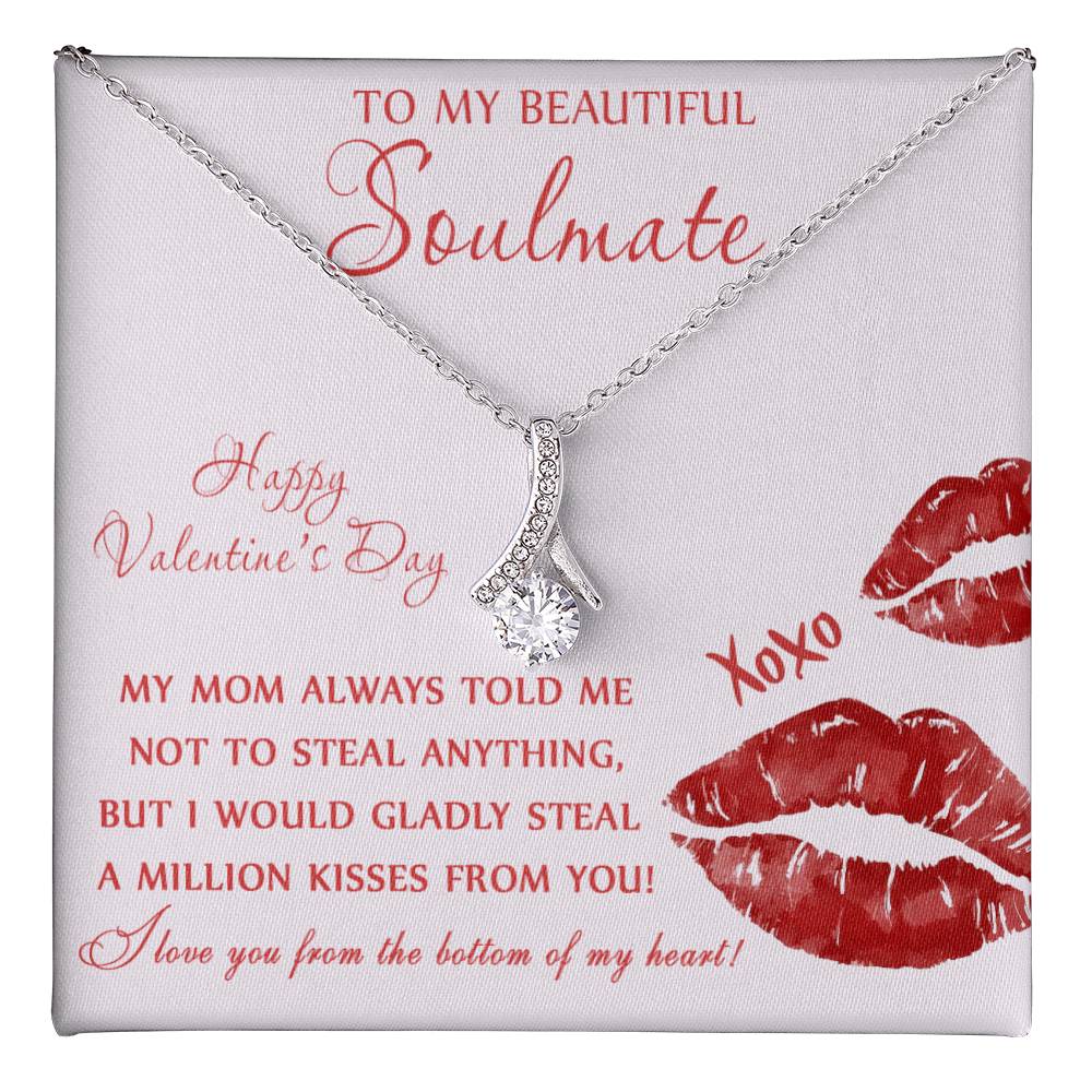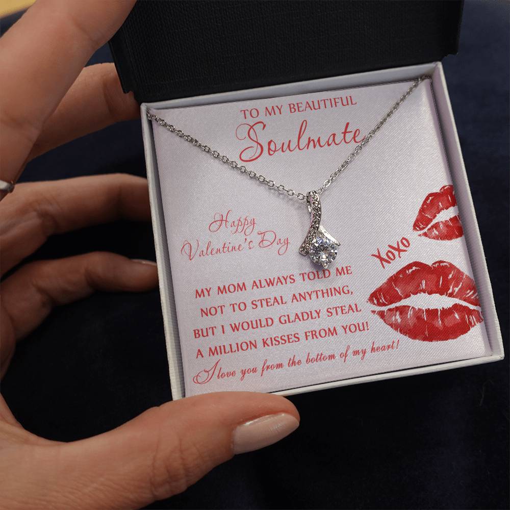 Imagine her reaction when she opens this stunning gift! The Alluring Beauty necklace features a petite ribbon shaped pendant that is sure to dazzle your special someone. Whether it's a birthday or anniversary, make sure to get her a gift she will love for years to come.