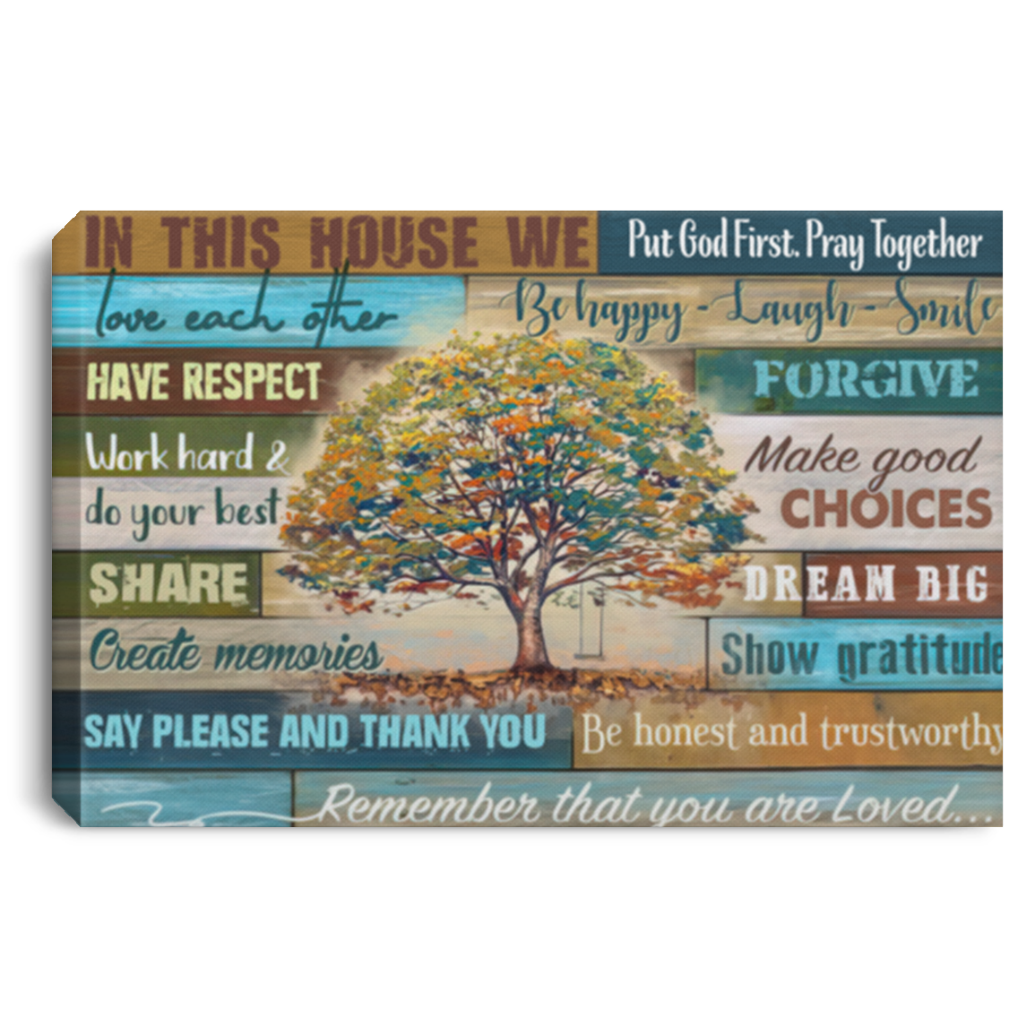 Wall Art In This House We Put God First Pray Together Canvas Wall Art Farmhouse Decor Poster Birthday Wedding Housewarming Gift Ready To Hang size 24x36, Gifts for Men, Women - Gifts on Xmas, Christma CANLA75 Landscape Canvas .75in Frame
