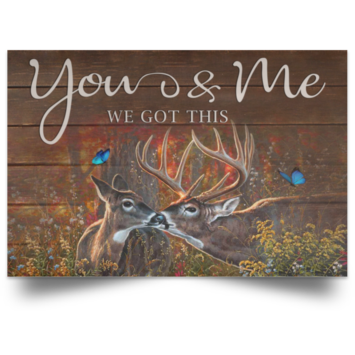 Wall Paintings Gifts for Family Couple White Tailed Deer and Butterfly You Me We Got This Best Gift Unisex, Awesome Birthday Perfect Happy Birthday Gift Decor Bedroom, Living Room 32x48 POSLA Satin Landscape Poster