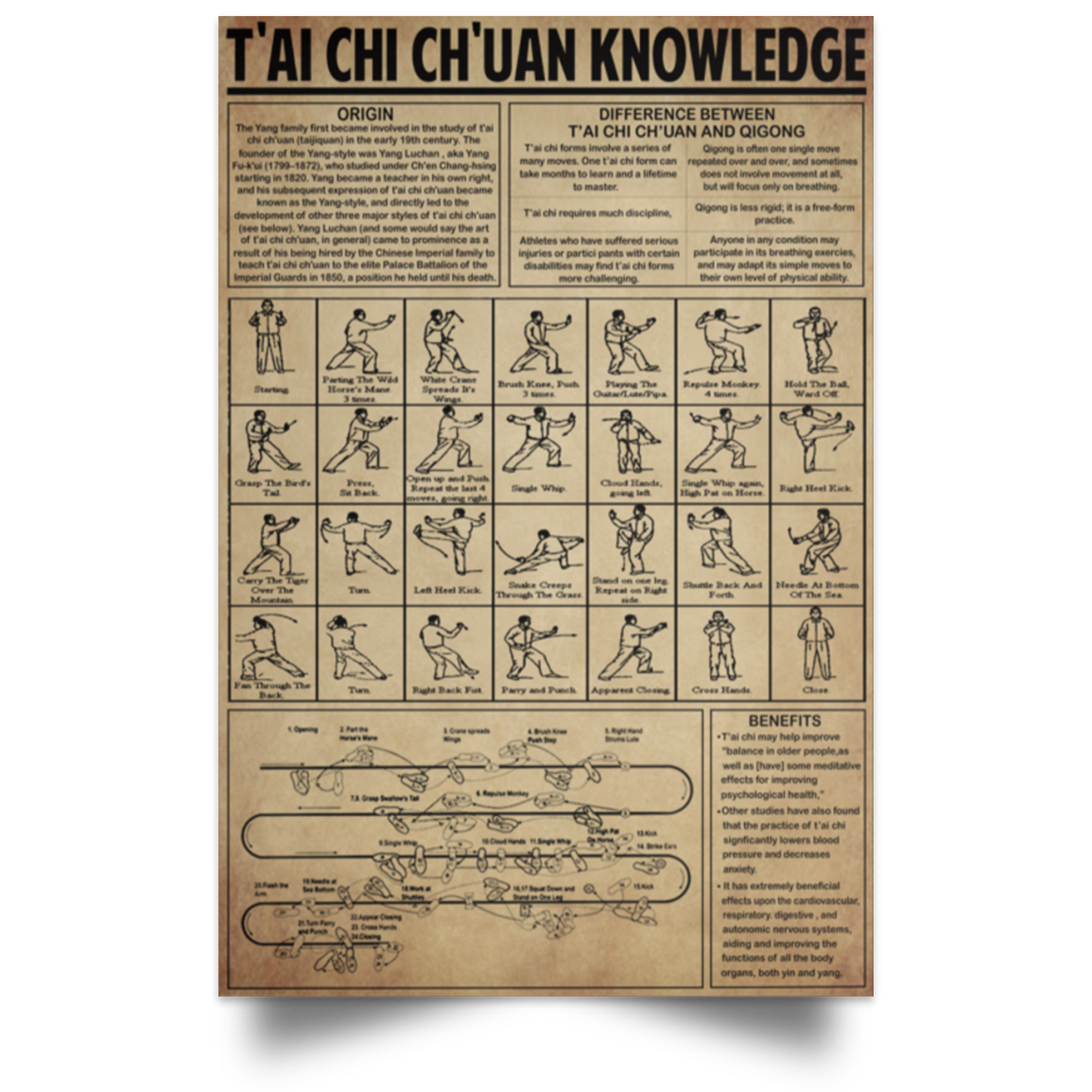 Wall Paintings TAI CHI Chuan Knowledge Family Friend Awesome Gifts Birthday Decor Home, Wall Art Durable Print 32x48 POSPO Satin Portrait Poster