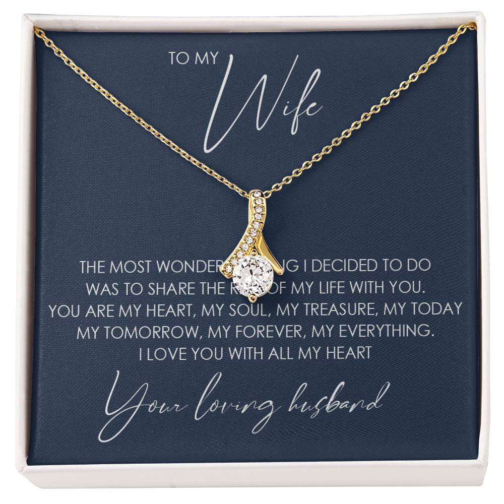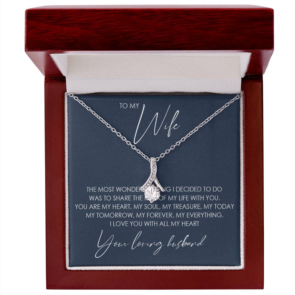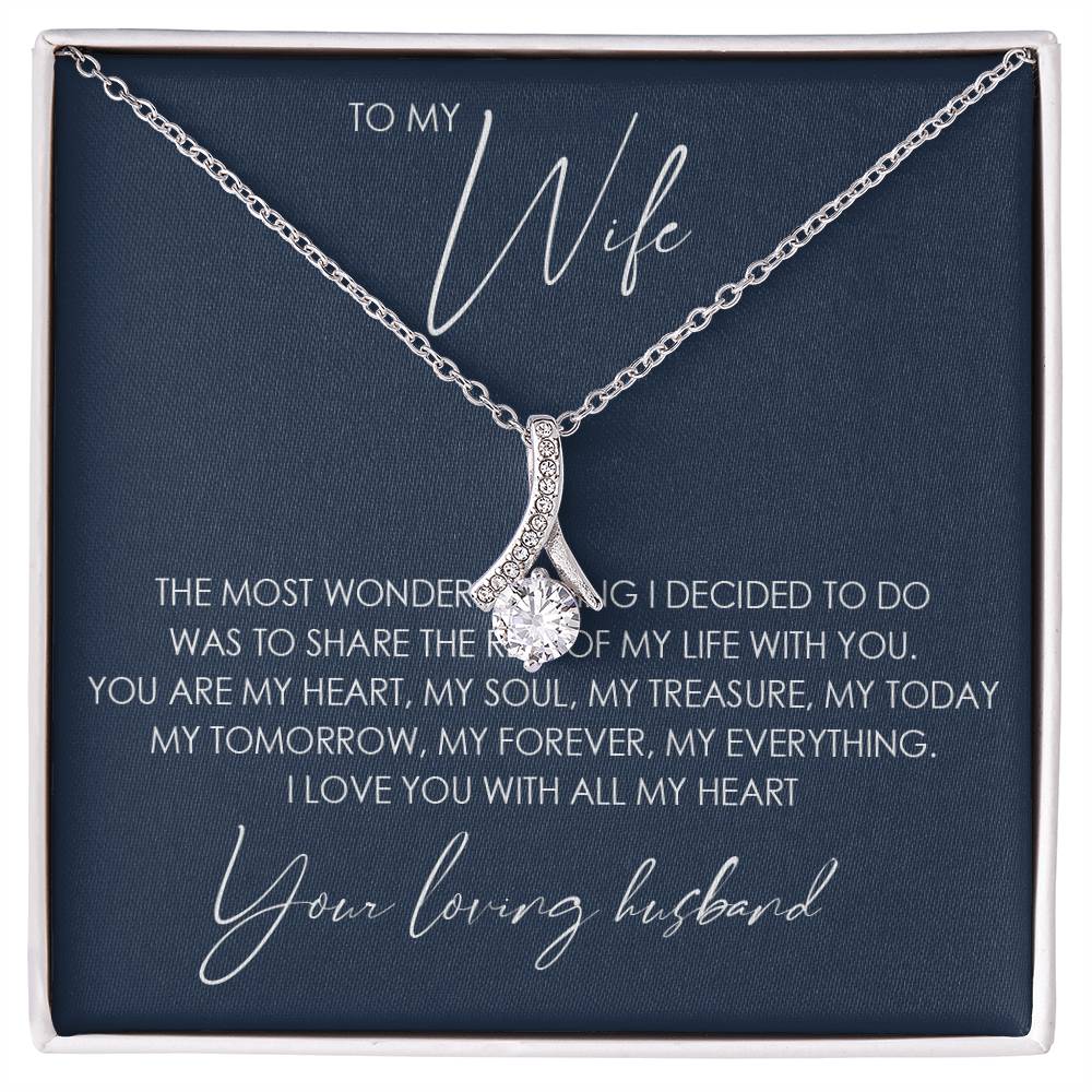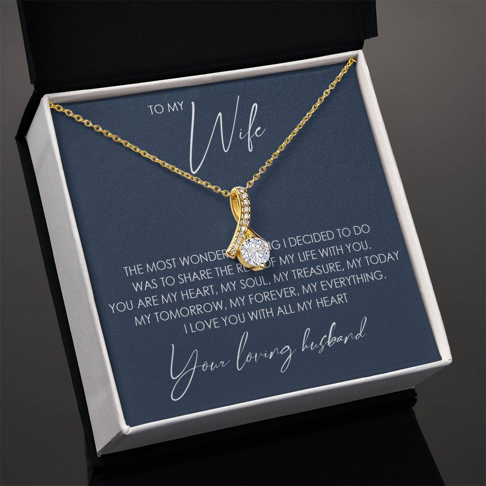 Imagine her reaction when she opens this stunning gift! The Alluring Beauty necklace features a petite ribbon shaped pendant that is sure to dazzle your special someone. Whether it's a birthday or anniversary, make sure to get her a gift she will love for years to come.