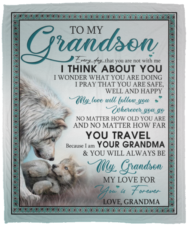 B08644ML4W Wolf Fleece Blanket - Gift Grandma to My Grandson i Think About You, My Love Wil VPM Cozy Plush Fleece Blanket - 50x60