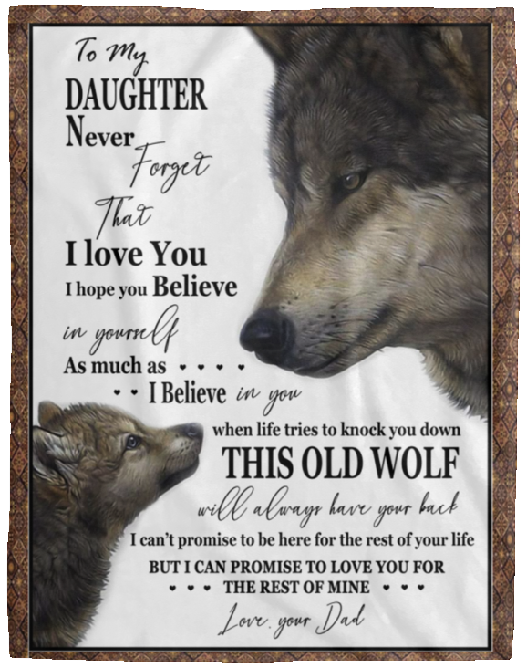 Wolf To My Daughter Never Forget That I Love You I Hope You Believe In Yourself As Much As I Believe In You Love Your Dad White Fleece Blanket 50''x60''; 60''x80'' Printed In US (White, 60''x80'') VPL Cozy Plush Fleece Blanket - 60x80